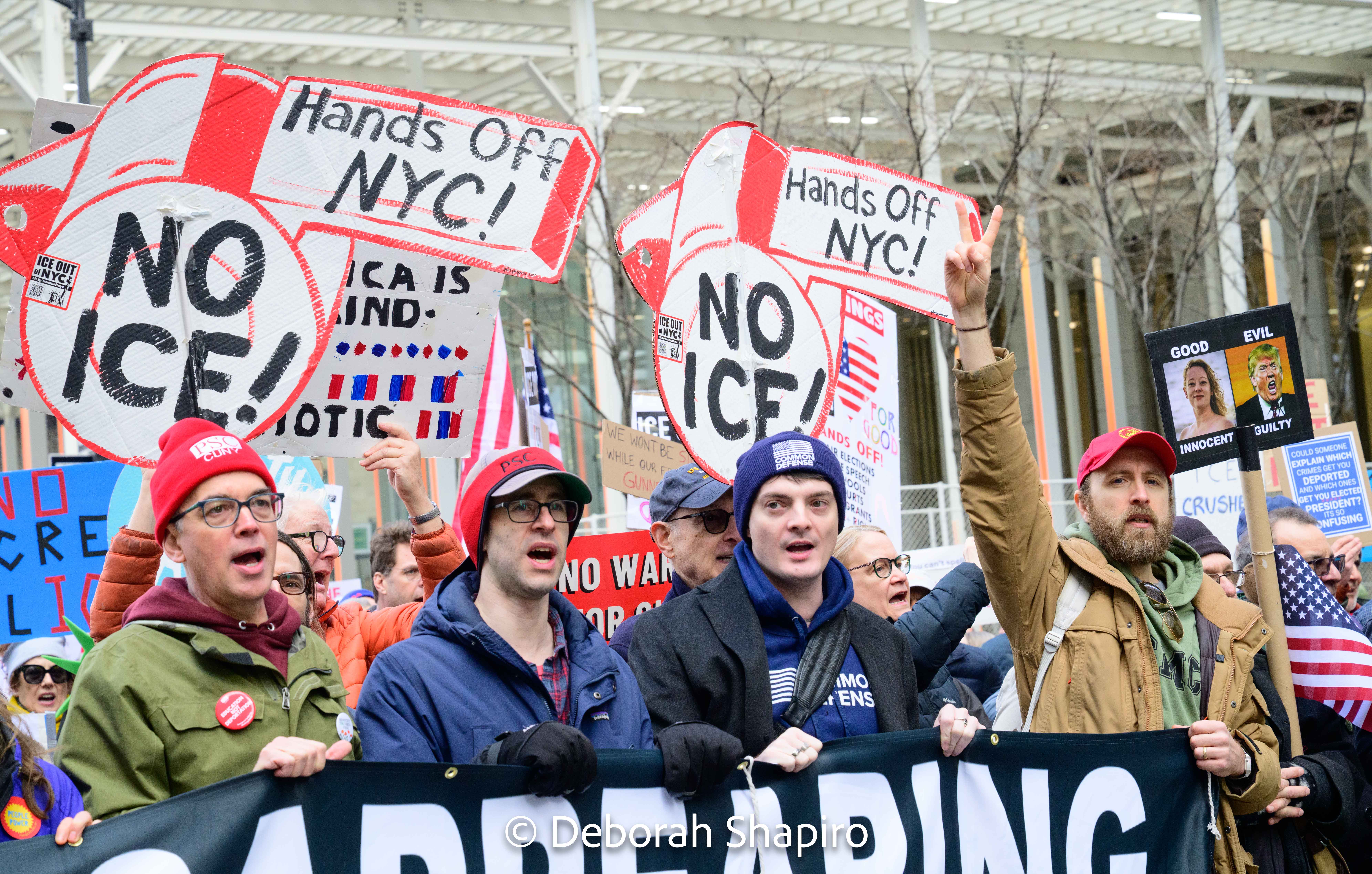 A large protest march started out at Foley Square in Manhattan on March 15, directly across from the Federal Courthouse. The protesters demonstrated against cuts to health care and the social safety net, and the firing of federal workers, marching past ICE headquarters and City Hall before proceeding down Broadway to Lower Manhattan. Senator Chuck Schumer was a focus of their anger after he voted with Republicans for a funding bill without negotiating.