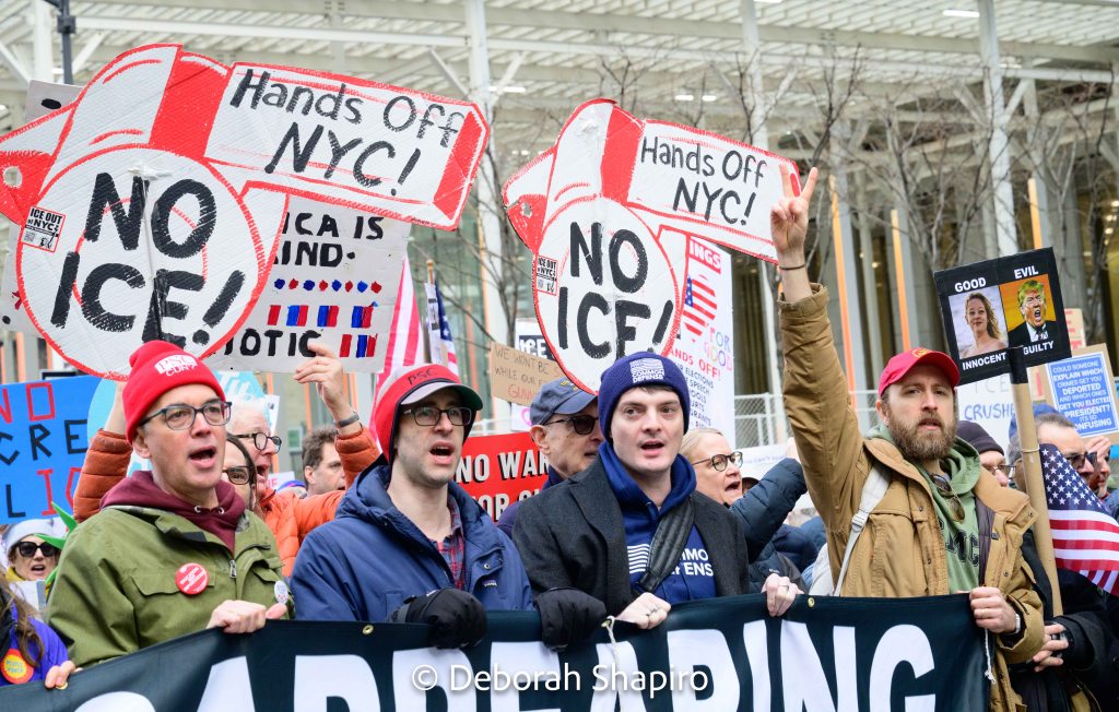 The large protest march from the New York Public Library to Central Park was perhaps smaller than the massive protest two weeks earlier, but with its two main themes of immigration and climate there was no less energy among the many thousands of people who joined the nationwide protests.