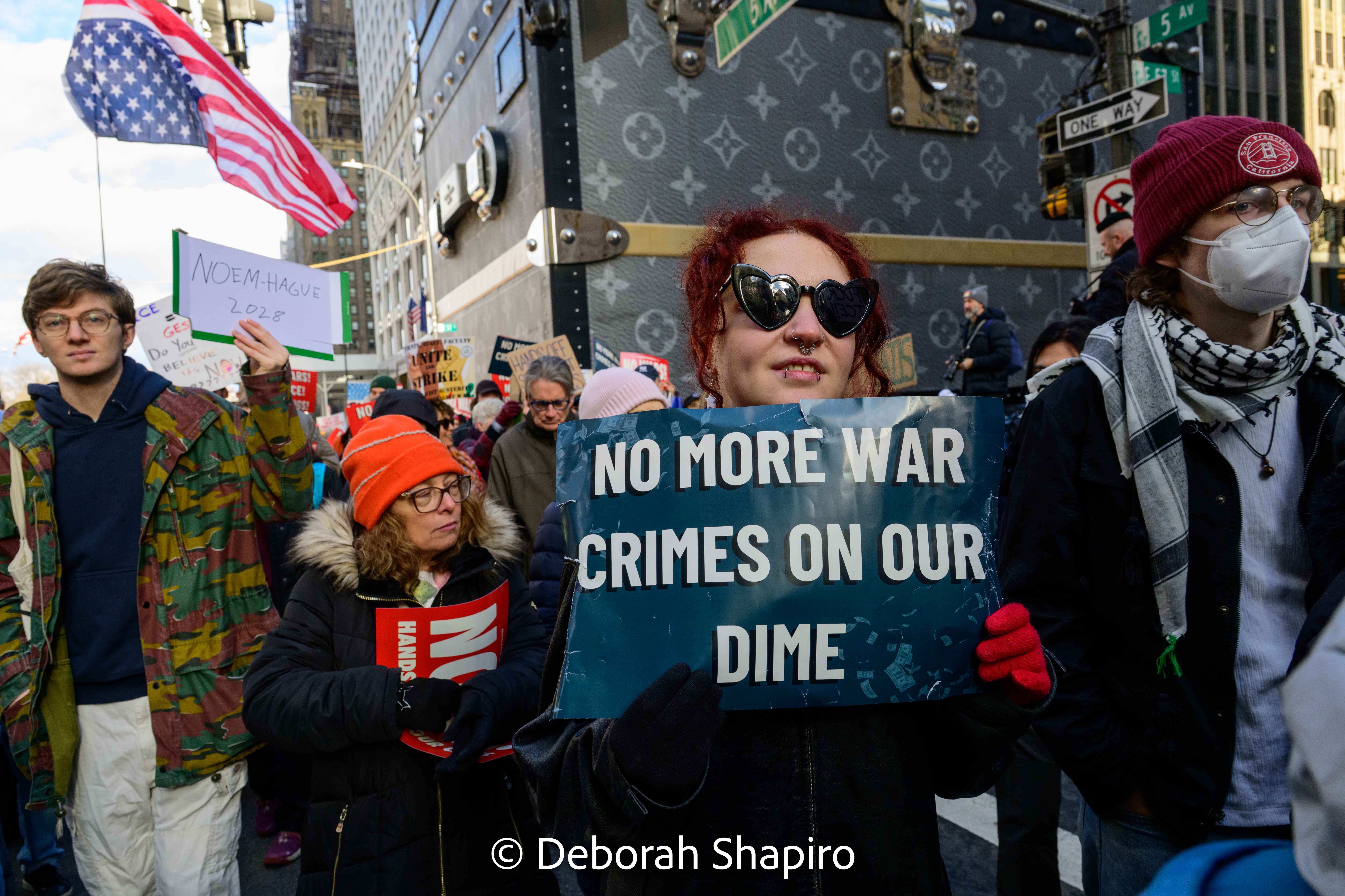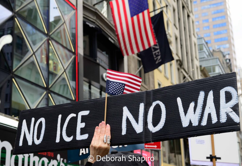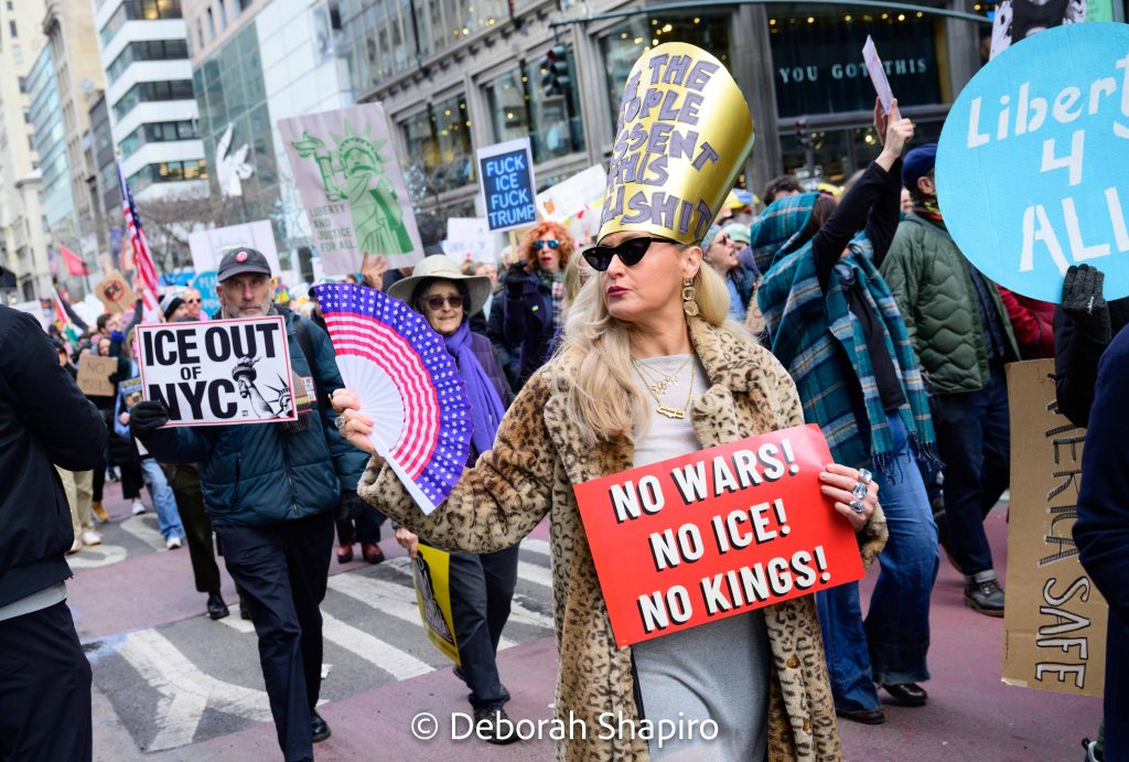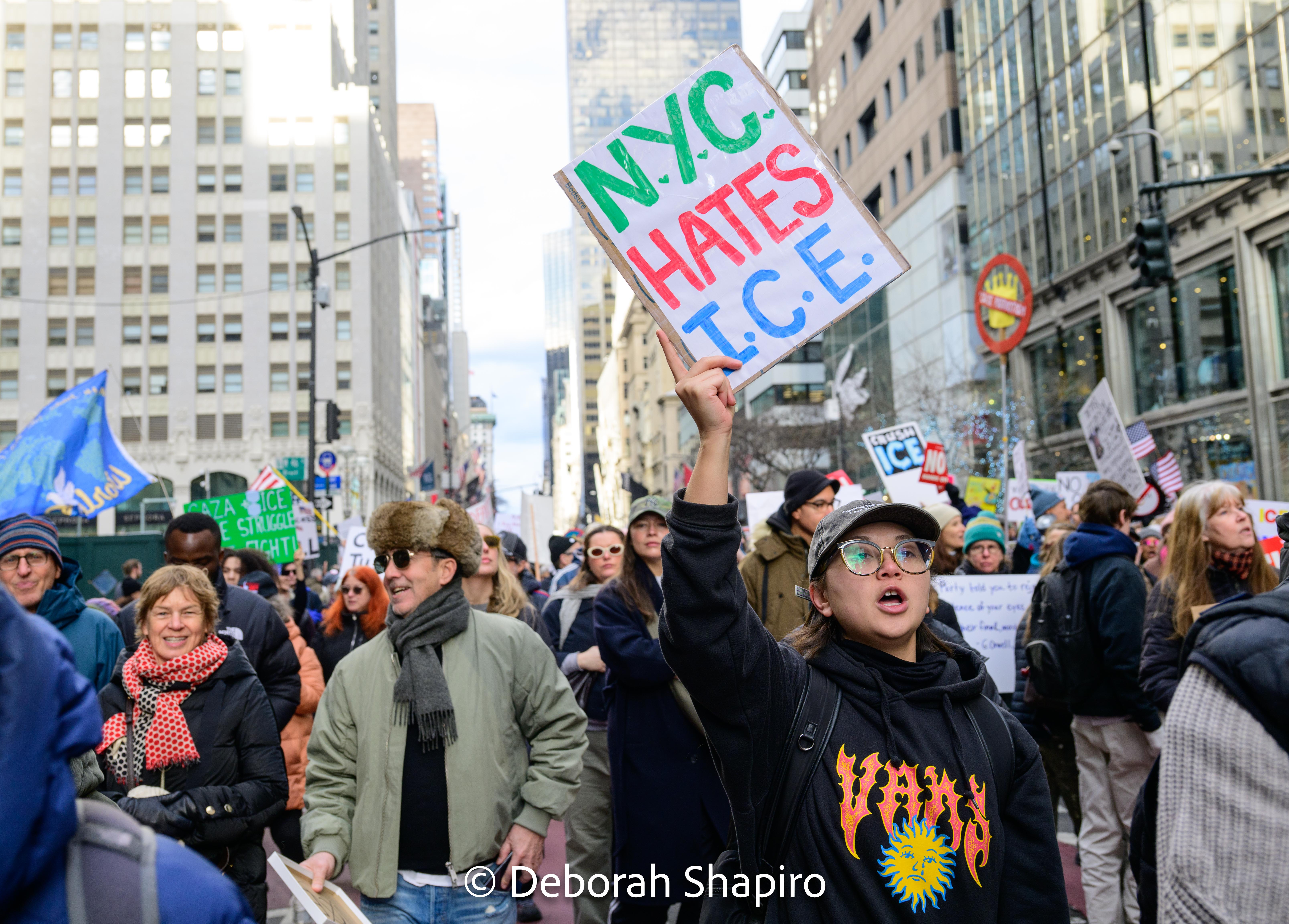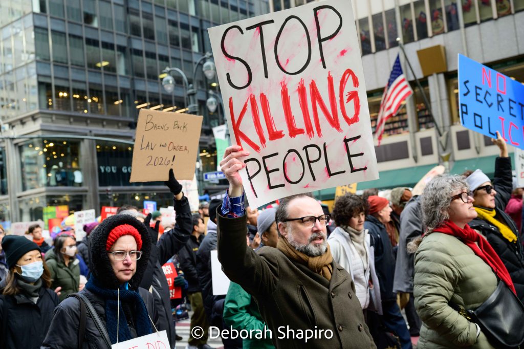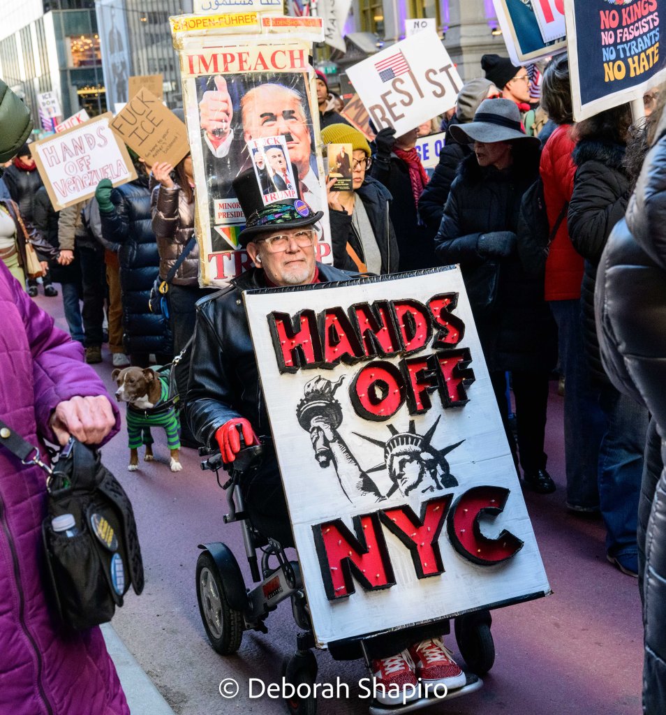 On January 11, 2026 protesters took to the streets across the country to protest recent government actions at home and abroad. In New York City, thousands of marchers walked peacefully from Grand Army Plaza down Fifth Avenue to 42nd Street.