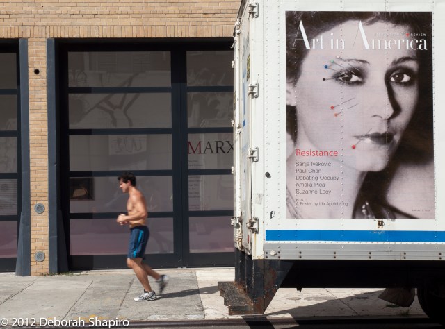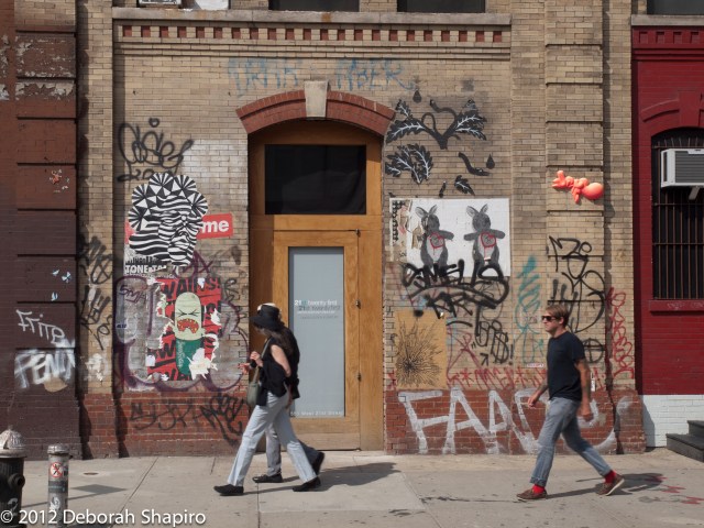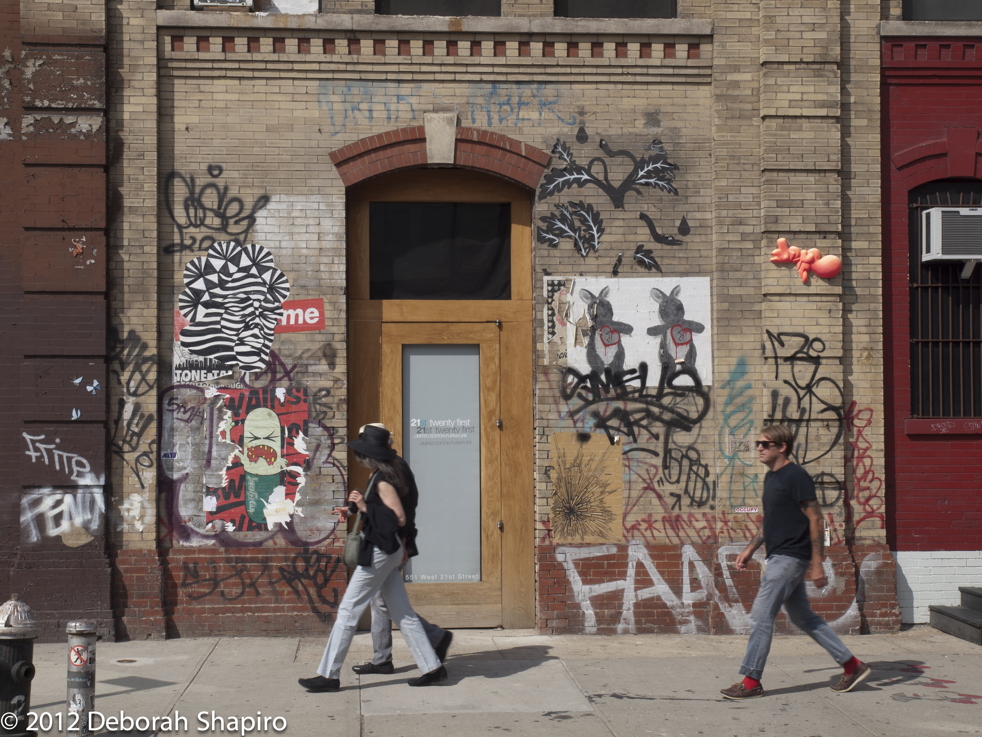 Generally I keep quiet on this blog, supplying only a location and allowing the images to speak for themselves. I’m mindful of the verbose captions on the photographs at the Metropolitan Museum, so pretentious and overwritten that they could make you gag. But I do have a few things to say about today’s excursion to Chelsea, where after only three years’ absence I felt like Rip van Winkle, if not Woody Allen in Sleeper. There went the neighborhood even before the High Line opened three years ago and attracted throngs of tourists; expensive galleries line the 500 block of West 20th and West 21st Streets where loading docks and warehouses once clogged the streets with trucks. It’s like Soho at a certain point in its development,  while it still had art galleries and before it became a tourist mall. No wonder the young artists moved to Williamsburg and Bushwick years ago.