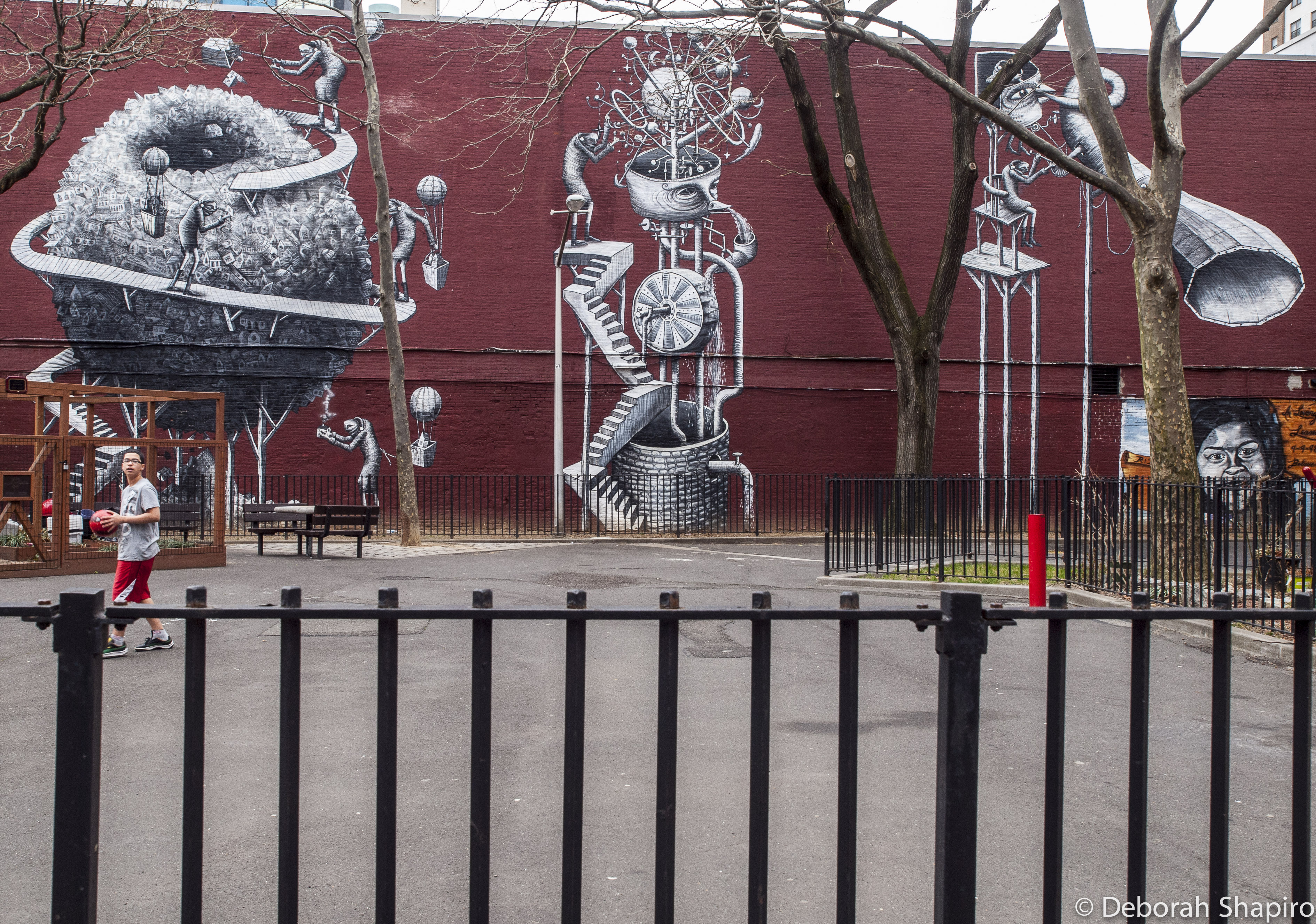I love New York. While you’re walking down the street, this is what you can see without even going out of your way. It’s part of a mural by Phlegm, a British artist; homage to Edward Gorey and Breughel, but artists have been imitating one another for centuries.