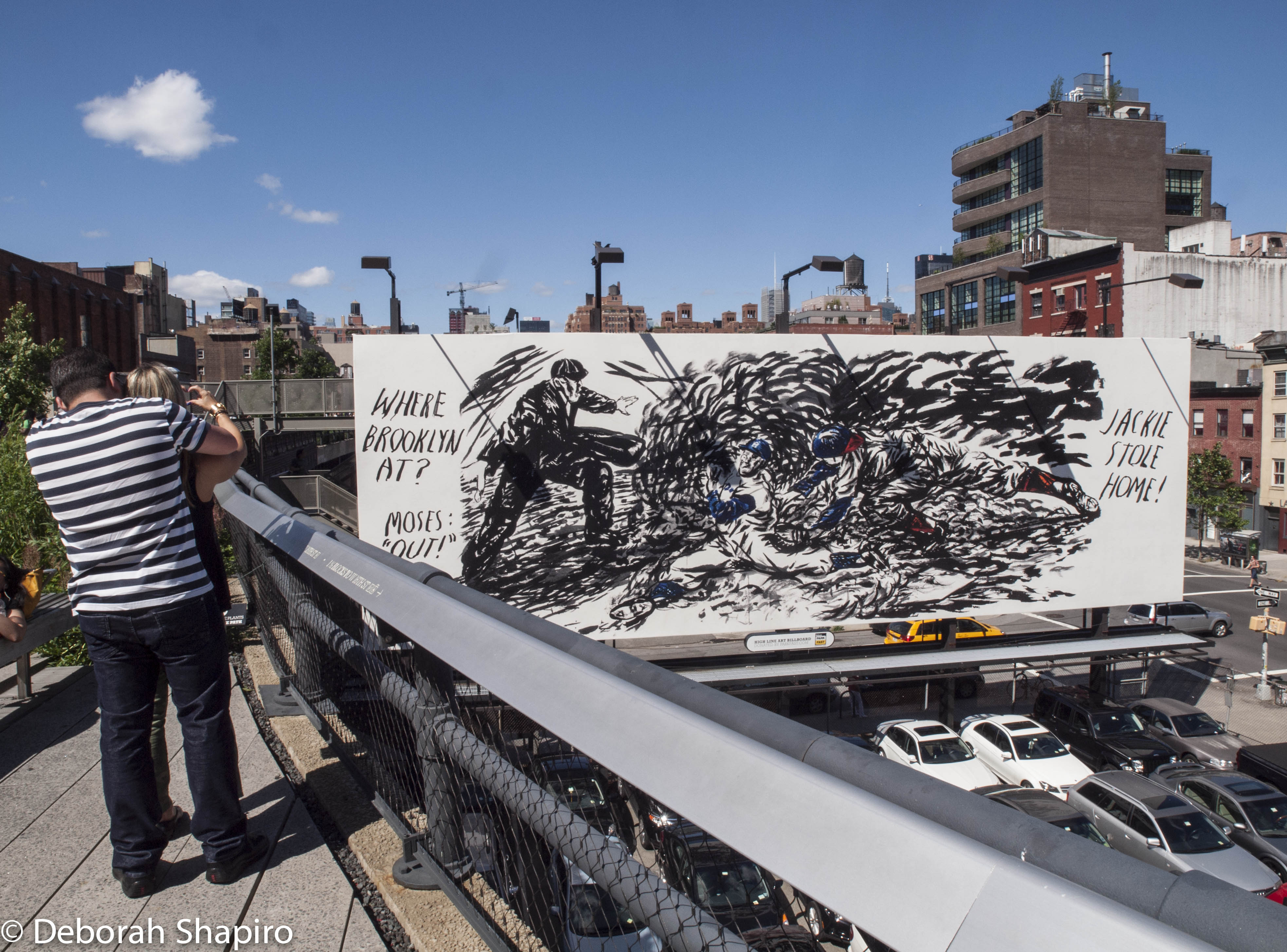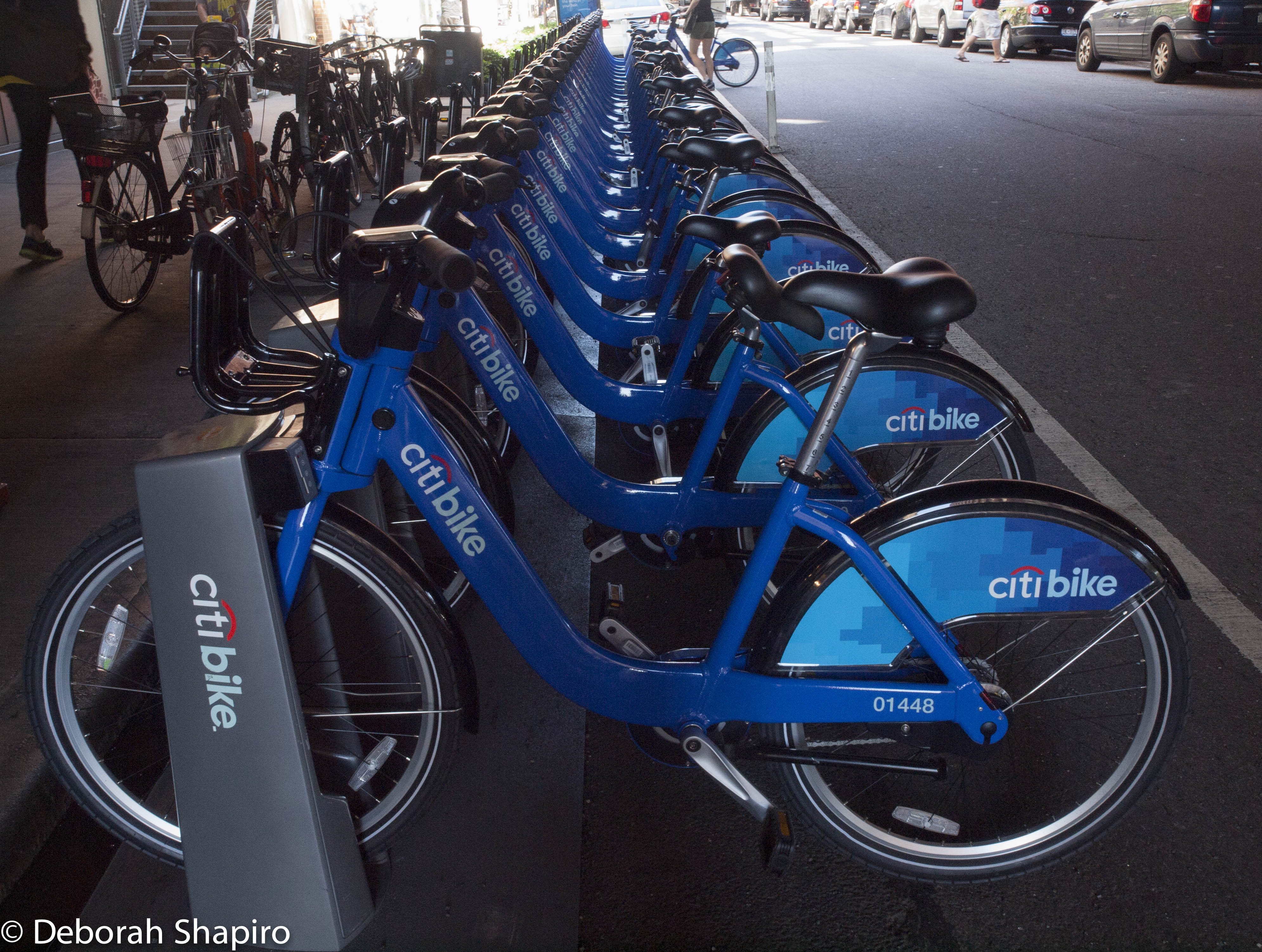My first visit to the High Line was exactly 4 years ago, about a week after it opened. At that time everyone hailed the innovative new urban park with its attractive plantings and expansive city views. Since then, the runaway success of the High Line has brought hordes of tourists to West Chelsea as well as a wave of development. Luxury condos in Chelsea now sell for higher prices per square foot than condos uptown. (The median price for a 3-bedroom condo in Chelsea is $3.6 million.) The rooftop sculpture garden next to the High Line that I admired four years ago is gone, a construction site in its place. There is official art, like the High Line Art Billboard in the picture above, but even the high-priced galleries in the area are beginning to close because they can no longer afford to do business in Chelsea. Another innovation is the Citibike docking station, unfortunately inoperable today due to well-publicized software and battery glitches.
