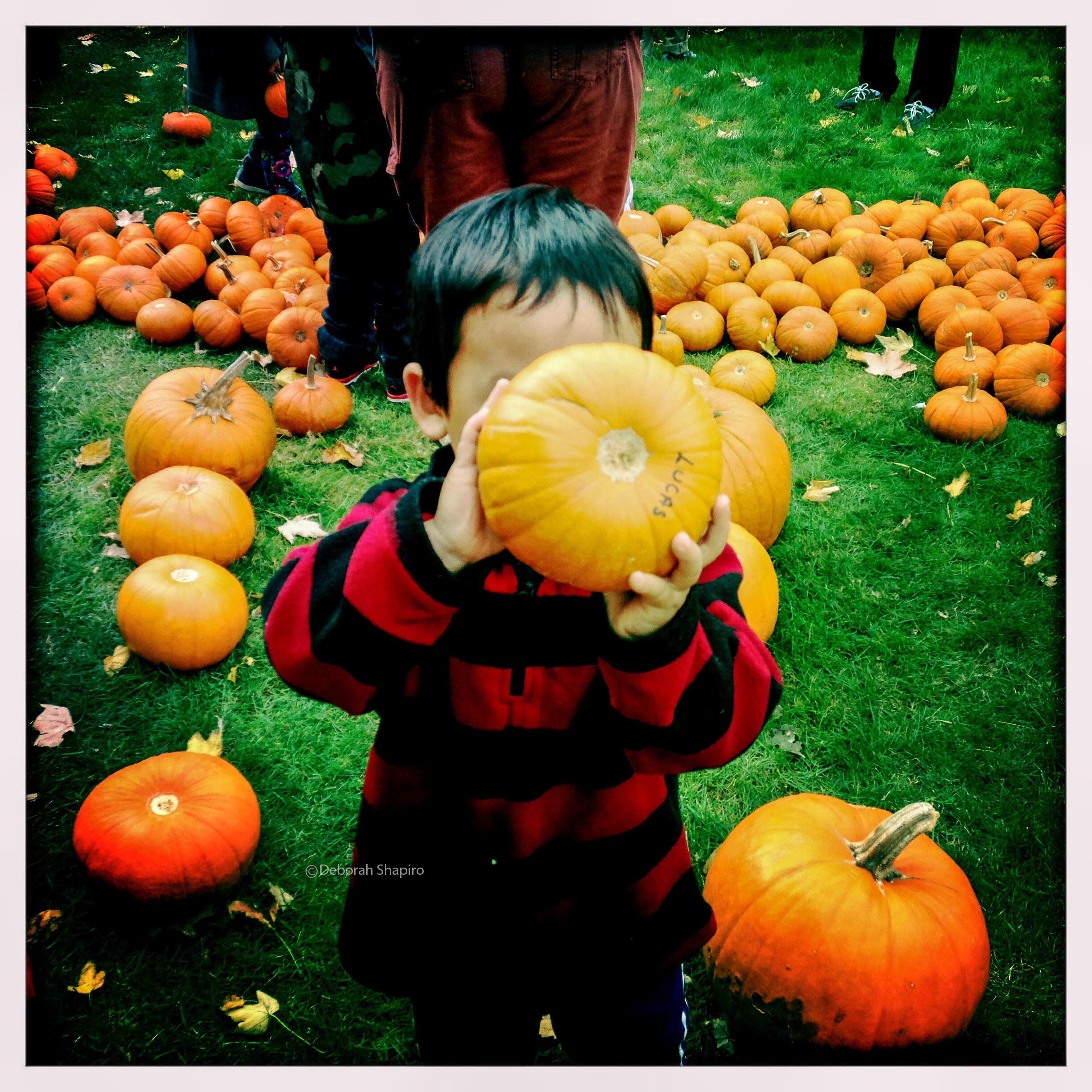 This is a Hipstamatic image made on an iPhone. I’m late to the party and had never even heard of Hipstamatic until recently, when I found out that Time magazine used a team of photojournalists with iPhones to provide live coverage of Hurricane Sandy. One of the photographers blogged iPhone photos from Libya, Iraq, and Afghanistan, frequently using Hipstamatic to process them. Without boring blog readers with the technical details, the app can be used to create supersaturated colors and vignetting like the effects I chose for this photo. It’s so much fun. I’m also aware that the parents of the preschoolers who visited this pumpkin sale were completely relaxed as I used my iPhone, while they would have been very upset if someone had been photographing their children with a big professional-looking camera.