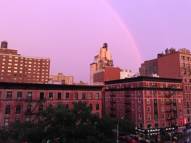 After a thunderstorm, a rainbow in the magic light over Broadway.
