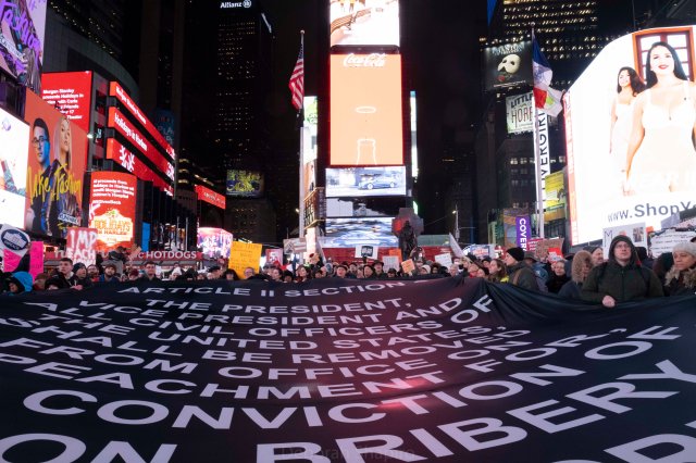 On the eve of the impeachment of President Trump in the House of Representatives, protests and marches took place across the country. Thousands turned out in Times Square.
