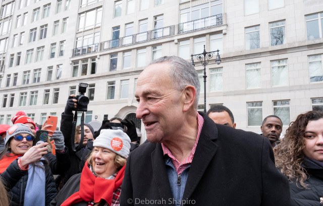 Senator Chuck Schumer greeting the marchers
