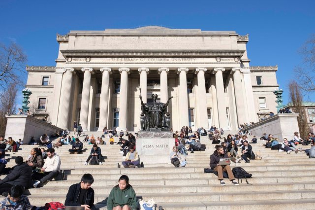 February 23: Columbia University students enjoying springlike weather on campus on a Sunday afternoon. Classes at the university were suspended on March 9.