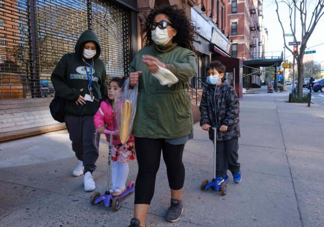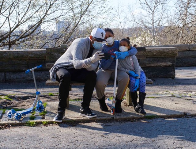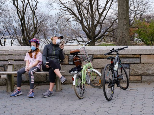 April 22: Growing up in a pandemic: no school, riding bicycles on Broadway, face masks. Bicycle riding increased dramatically as people shunned the subways and buses.