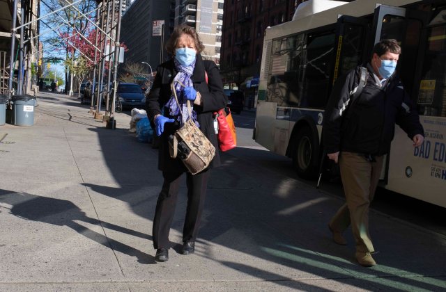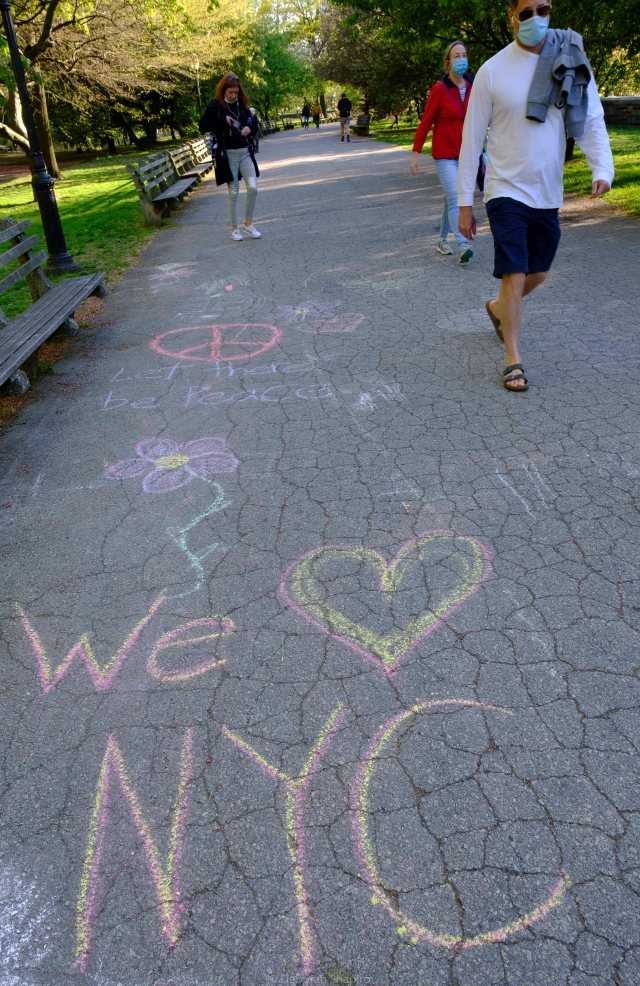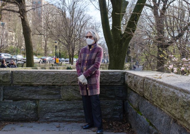 April 12: social distancing, mask, and gloves on Riverside Drive while maintaining standards of dress.