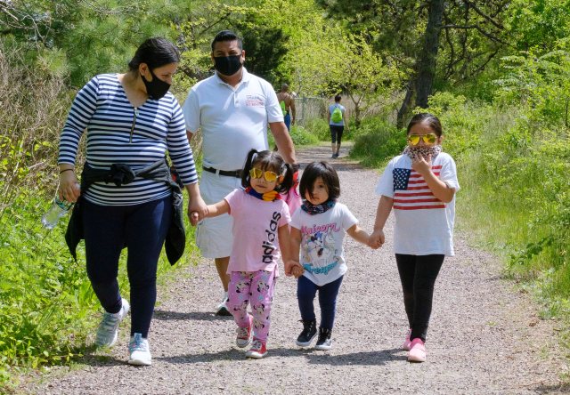 May 16, my first excursion outside of Manhattan: A family out for a walk at the Jamaica Bay Wildlife Refuge in Queens. As the weather improved, people flocked to parks and outdoor recreation areas that stayed open to the public.