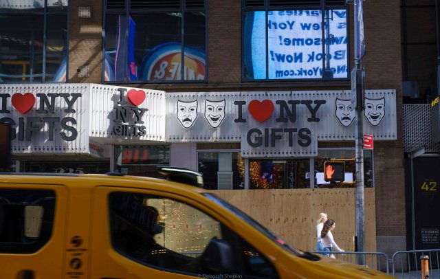 June 13: a store looted during the early days of protests boarded up on Broadway in Times Square.