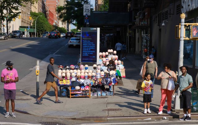June 14: Plywood covering a store on 125th Street in Harlem is covered with graffiti.