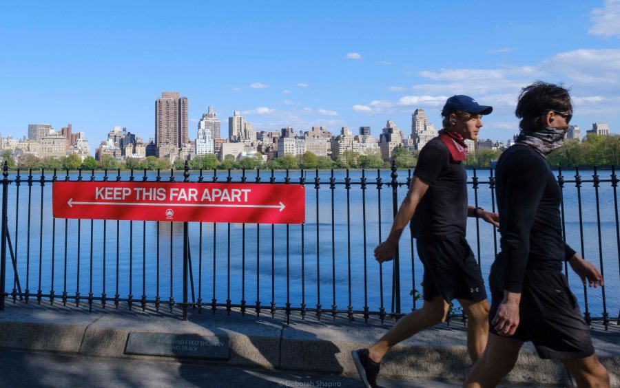 May 12: The running track around the reservoir in Central Park, where not everyone adheres to social distancing guidelines.