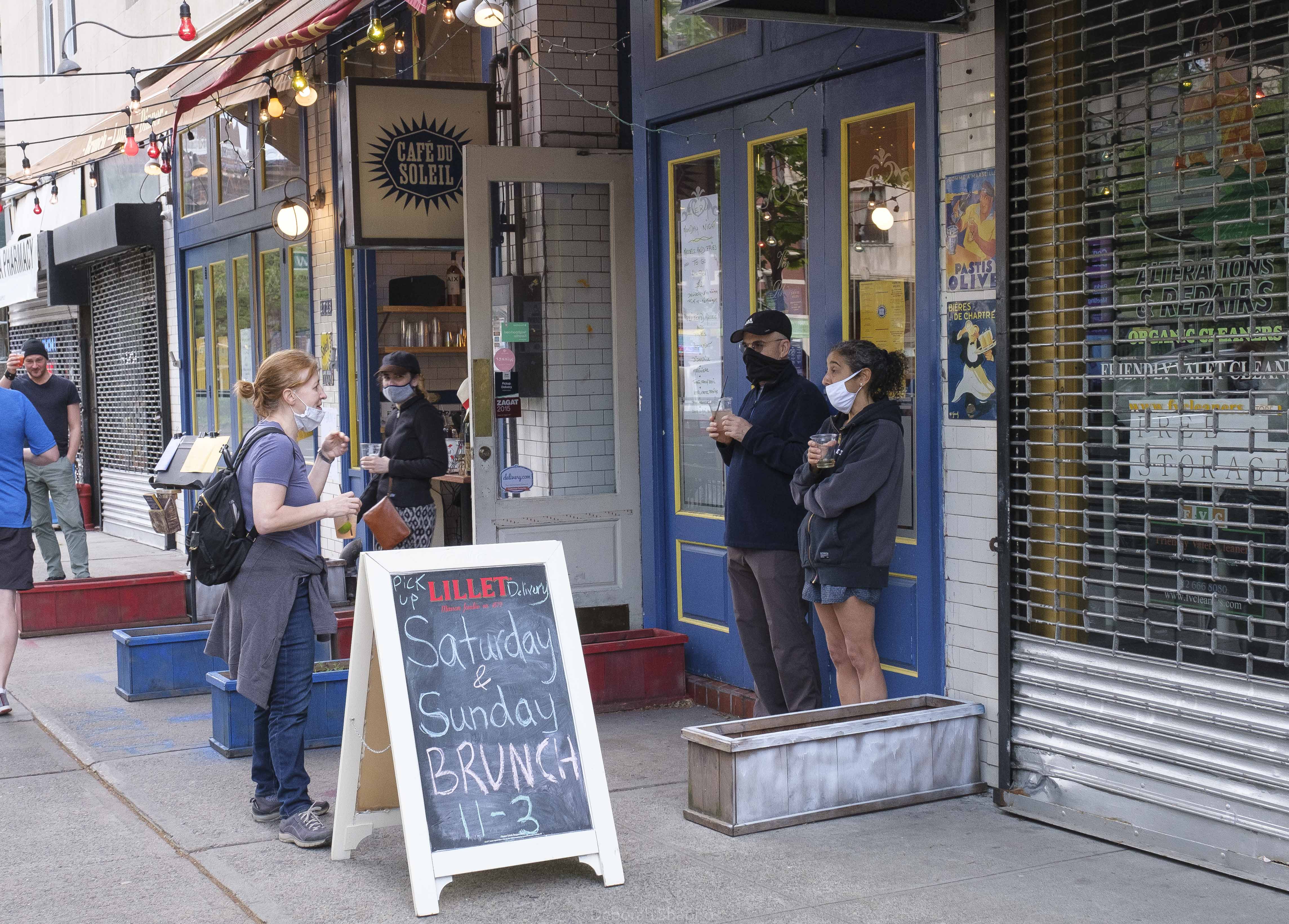 May 17: Bars are allowed to serve drinks on the sidewalk, quickly becoming a scene for happy hour.
