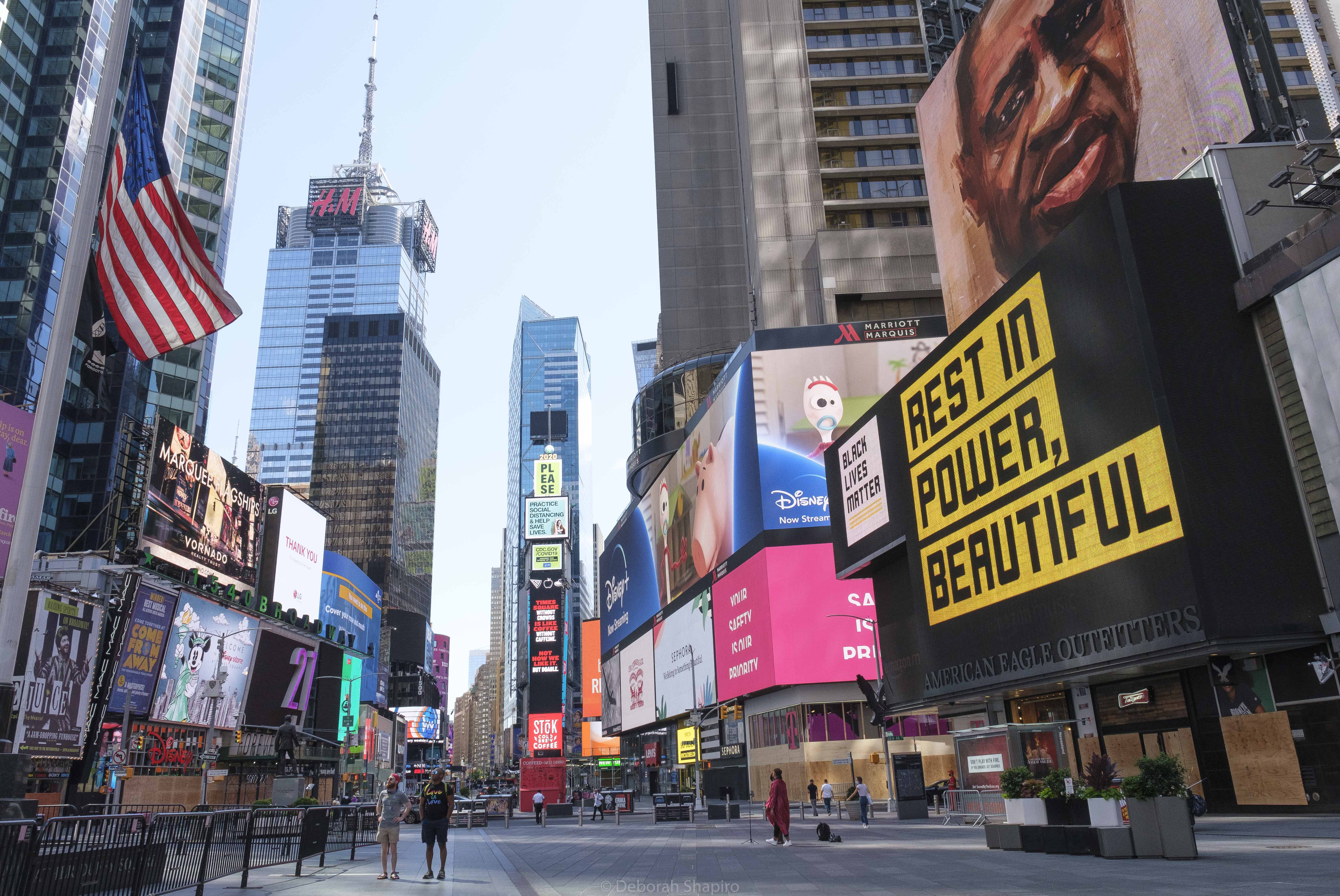 June 13: Times Square was barricaded by the police and closed to the public to prevent demonstrators from entering. Businesses expressed solidarity with the Black Lives Matter movement.