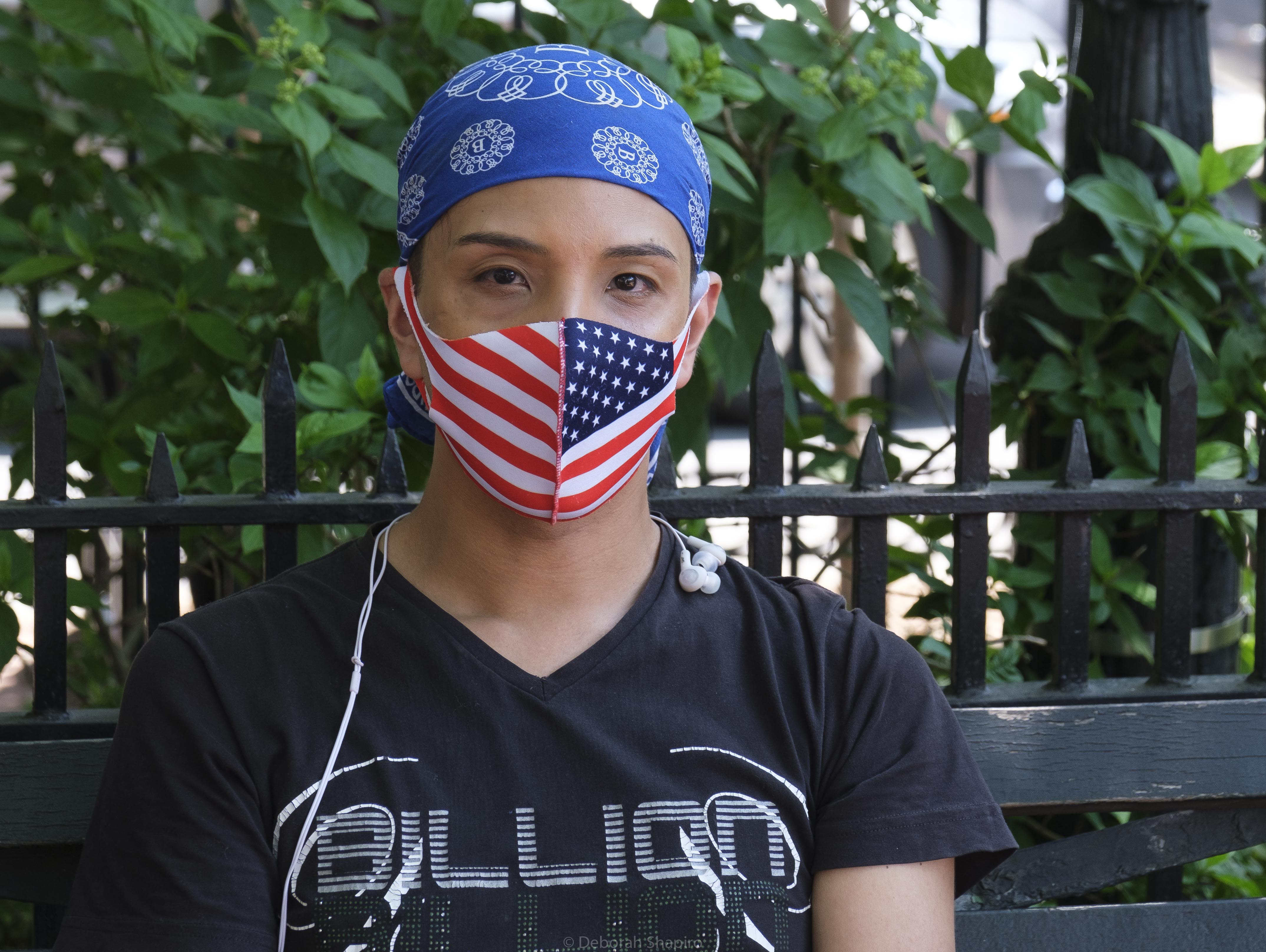 June 28: A young man at the Stonewall National Monument in Greenwich Village.