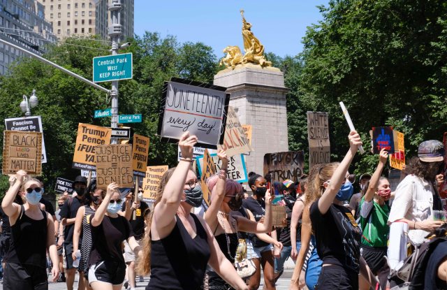 Protesters leaving Columbus Circle on their way to Trump Tower, July 4.