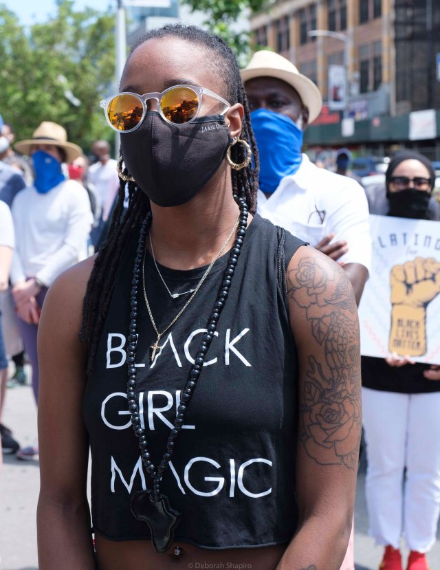 June 14: A protester in Harlem. Daily protests against police violence toward Black Americans continued for months all over the city.