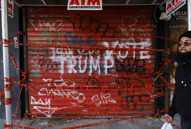 November 3, Election Day: A shuttered convenience store that closed after months of the pandemic, Broadway and 99th Street