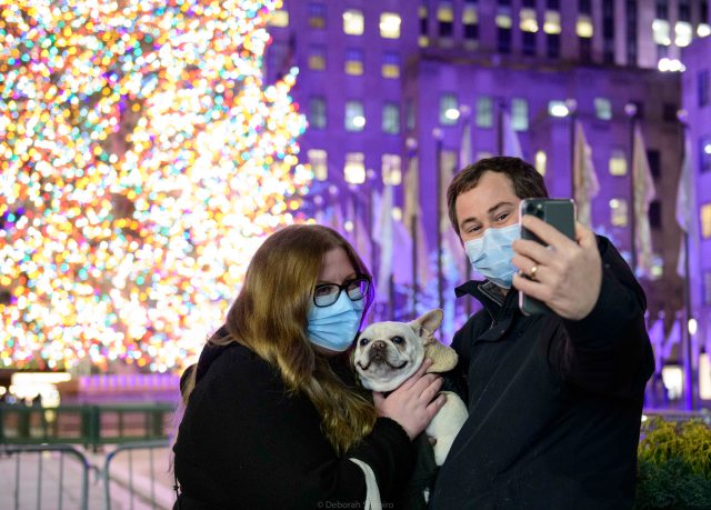 December 22: Visiting the iconic Christmas tree at Rockefeller Center was strictly limited this year. People were allowed to stand in front of the tree just long enough to take photos.