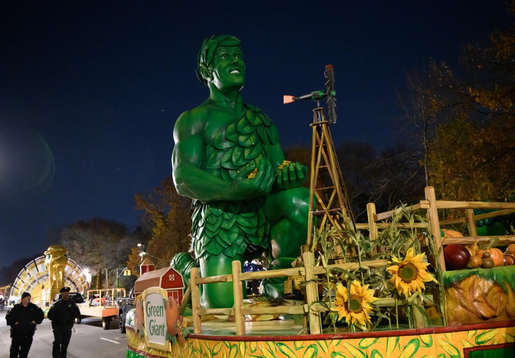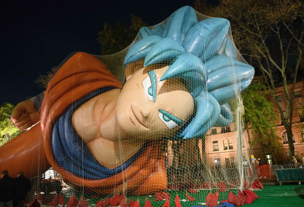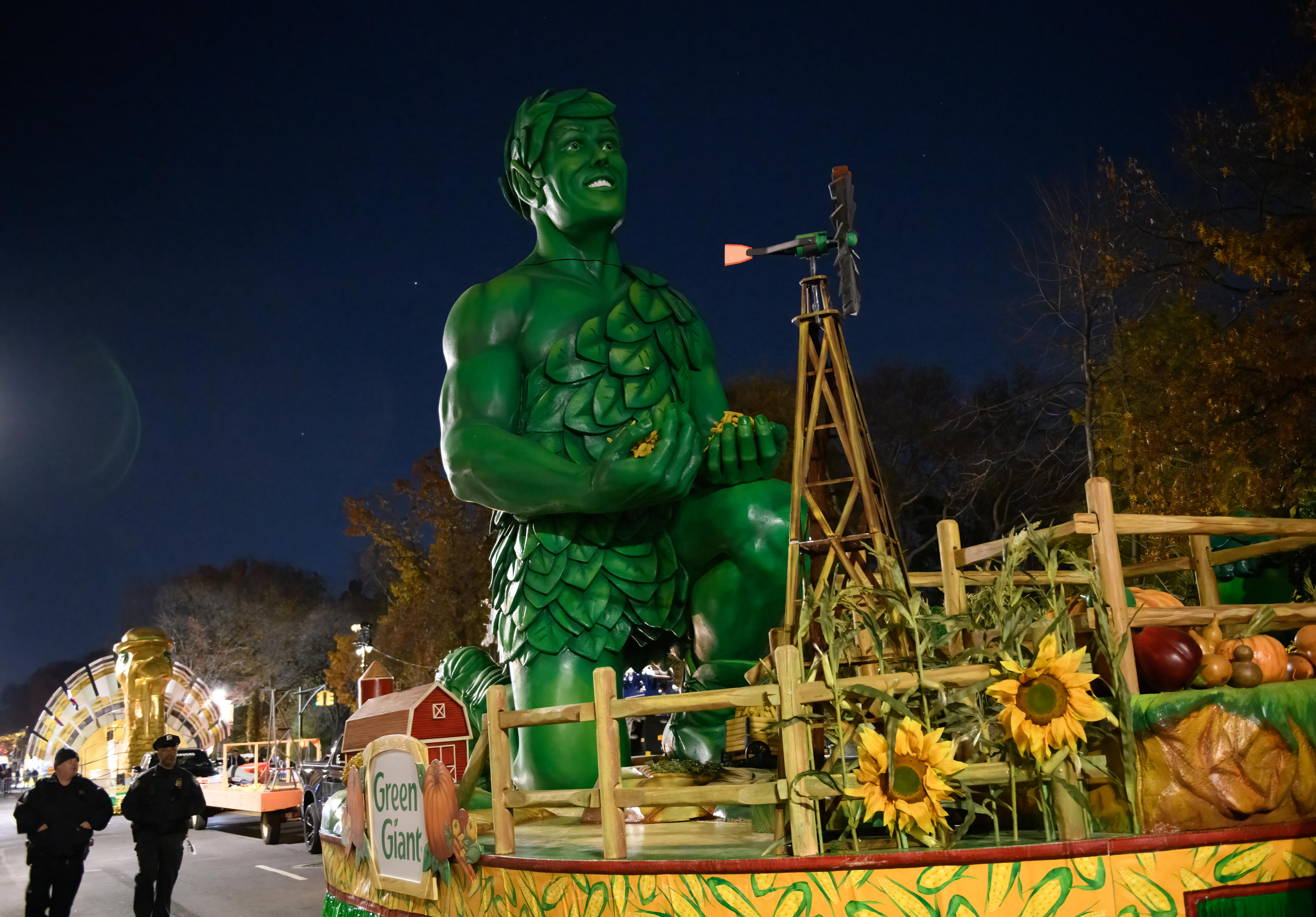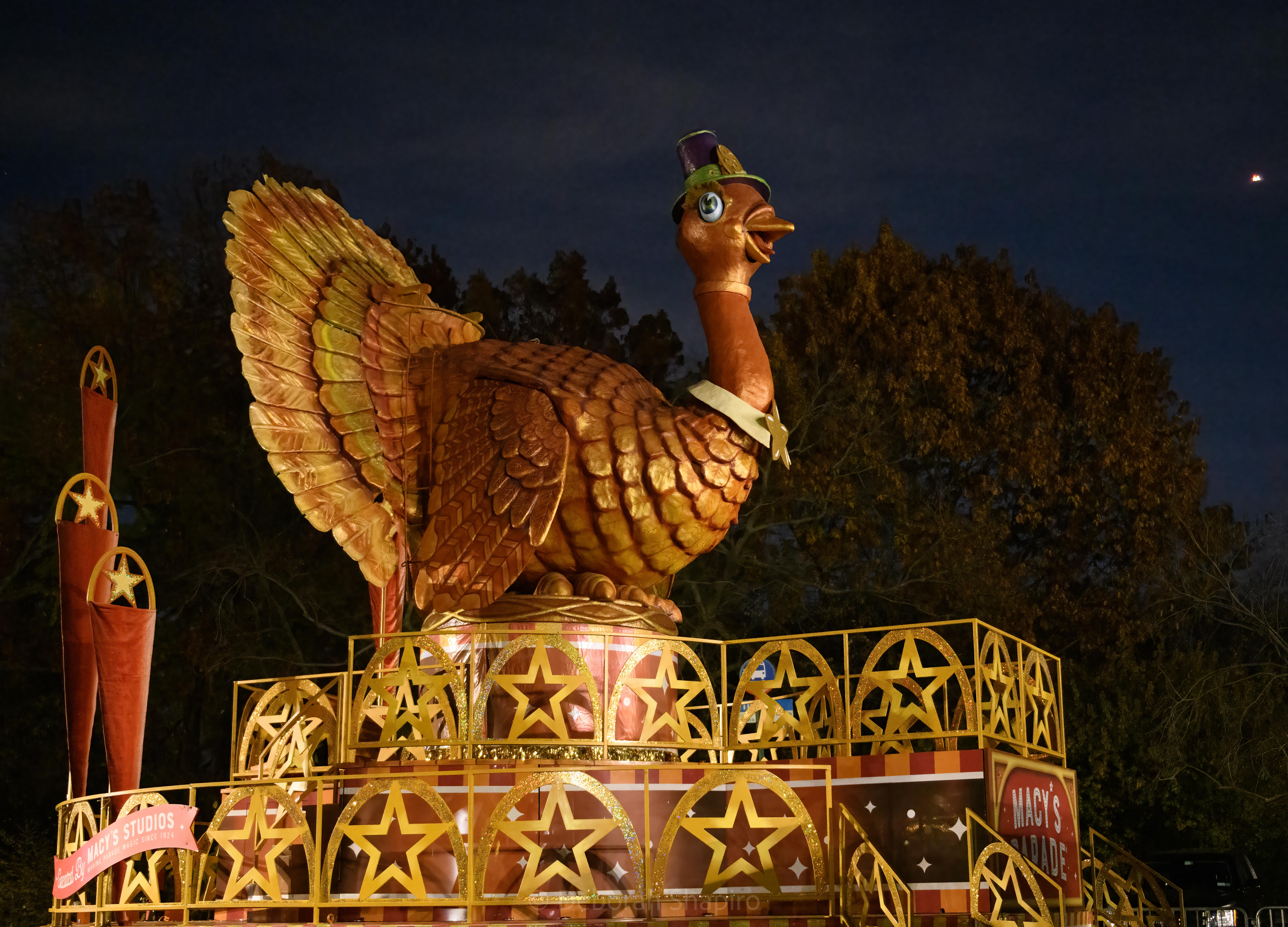 Once fully inflated, the balloons are held down with nets and sandbags.The quintessential turkey awaits the start of the paradeThe Jolly Green GiantThere’s a Tyrannosaurus rex inside the American Museum of Natural History just inside that door.Baby Yoda on West 81st StreetInflating a balloon with helium. A large crew works all day to prepare and secure the balloons.TeamworkSonic the Hedgehog inflated and ready to goGary, the snail from SpongeBob SquarePants, and a Macy’s crew member showing the scale. The man is well over 6 feet tall.