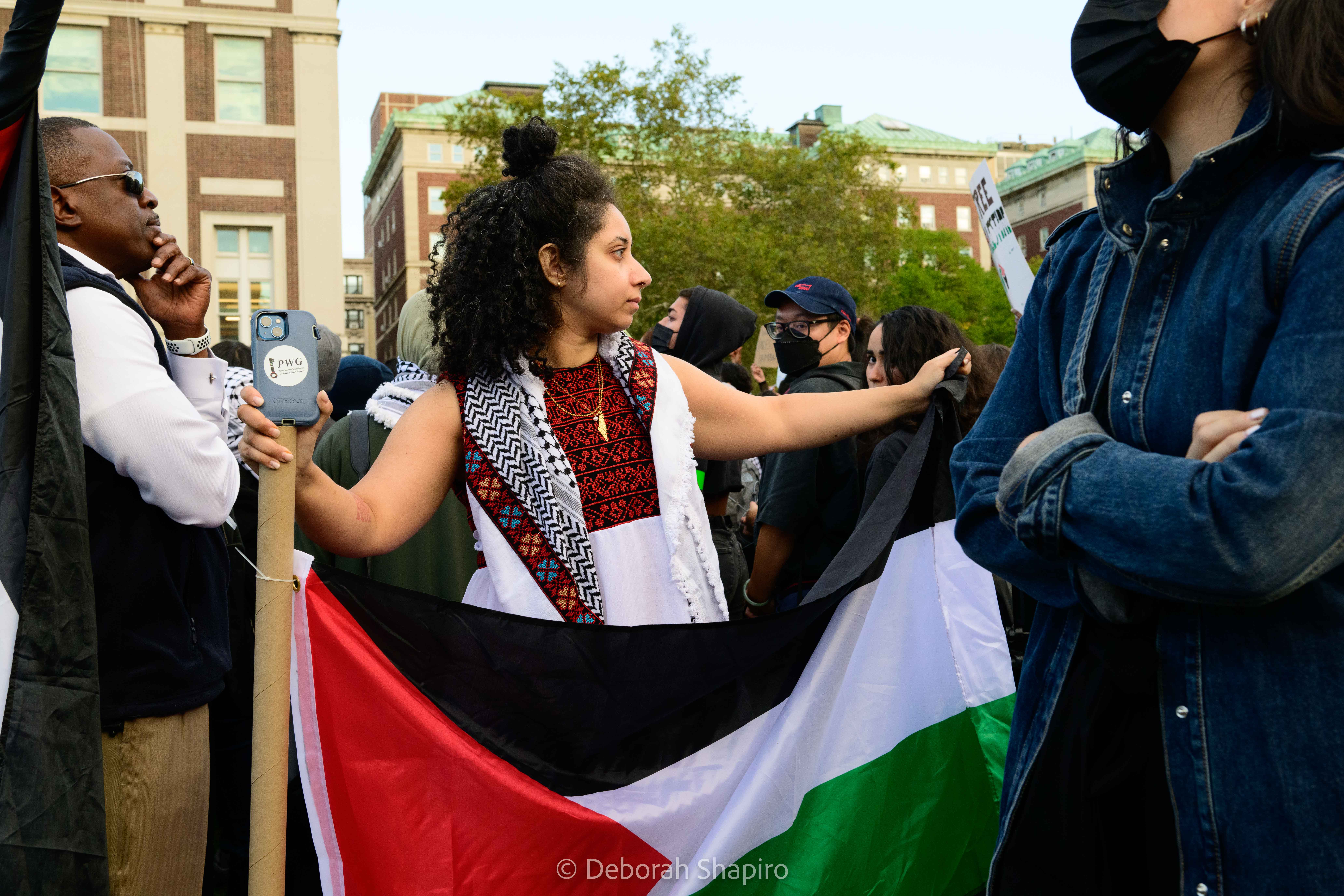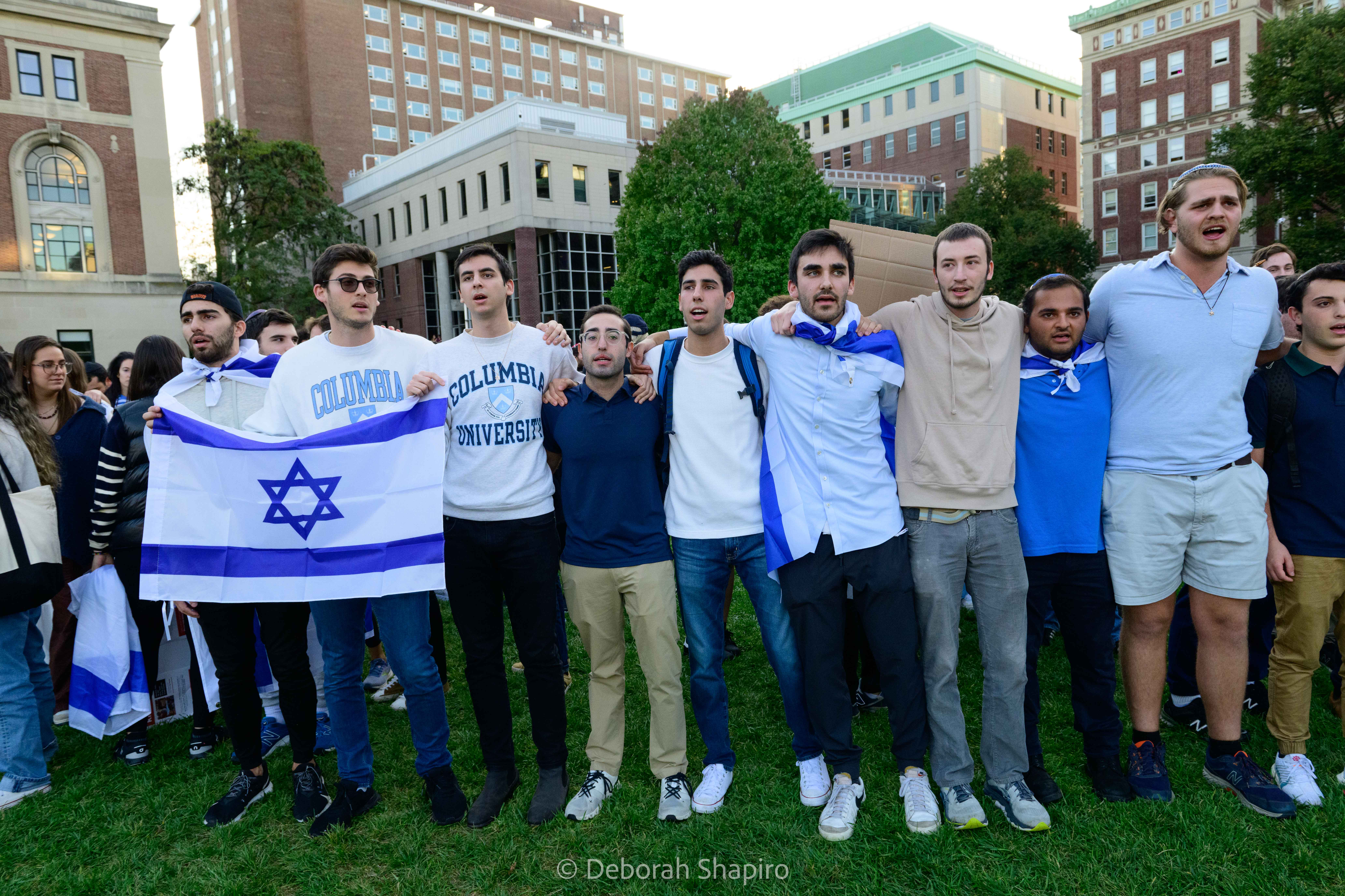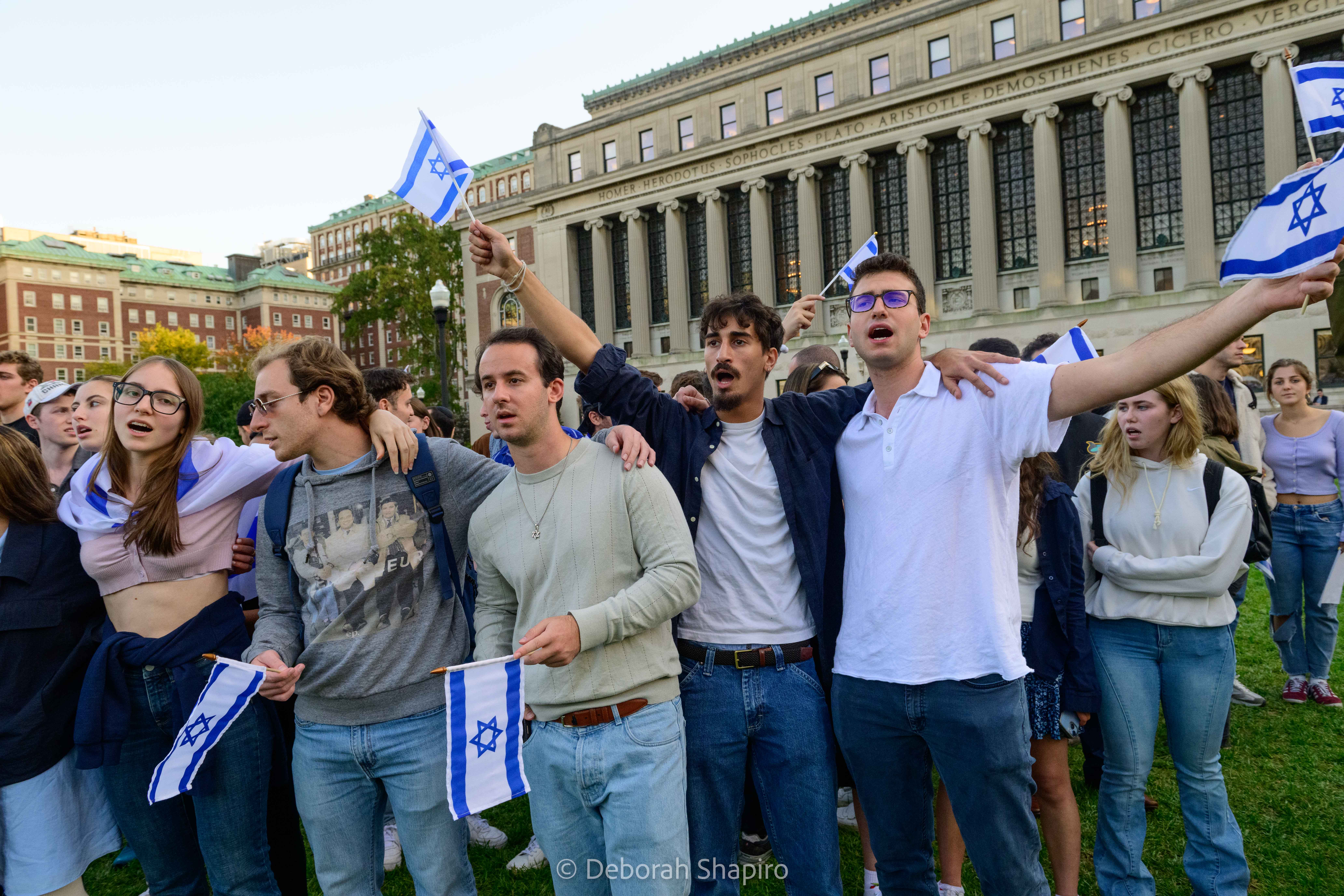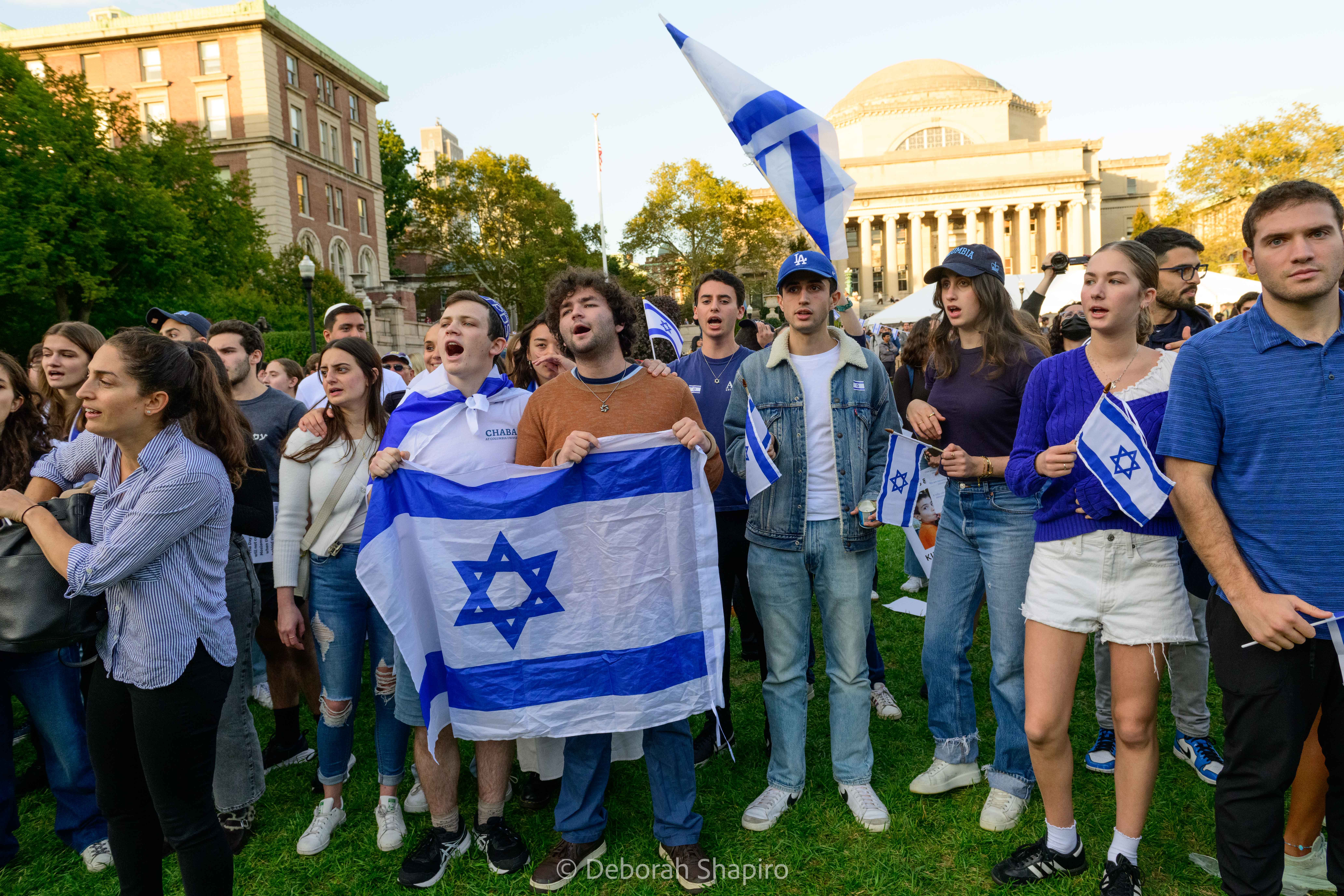 On Thursday, October 12 starting at 6 AM, the entire Columbia University campus was closed to anyone not presenting a Columbia ID at the gates following the invasion of Israel by Hamas and the announcement of protests. In the afternoon two opposing protests were held under tight security. Butler Lawn in front of Butler Library was divided into a protest organized by Columbia Students for Justice in Palestine and a protest on the other side of the lawn by Students Supporting Israel at Columbia University on the other side, separated by campus security and police. The two protests were peaceful but could not have been more different. See the captions under the photos.