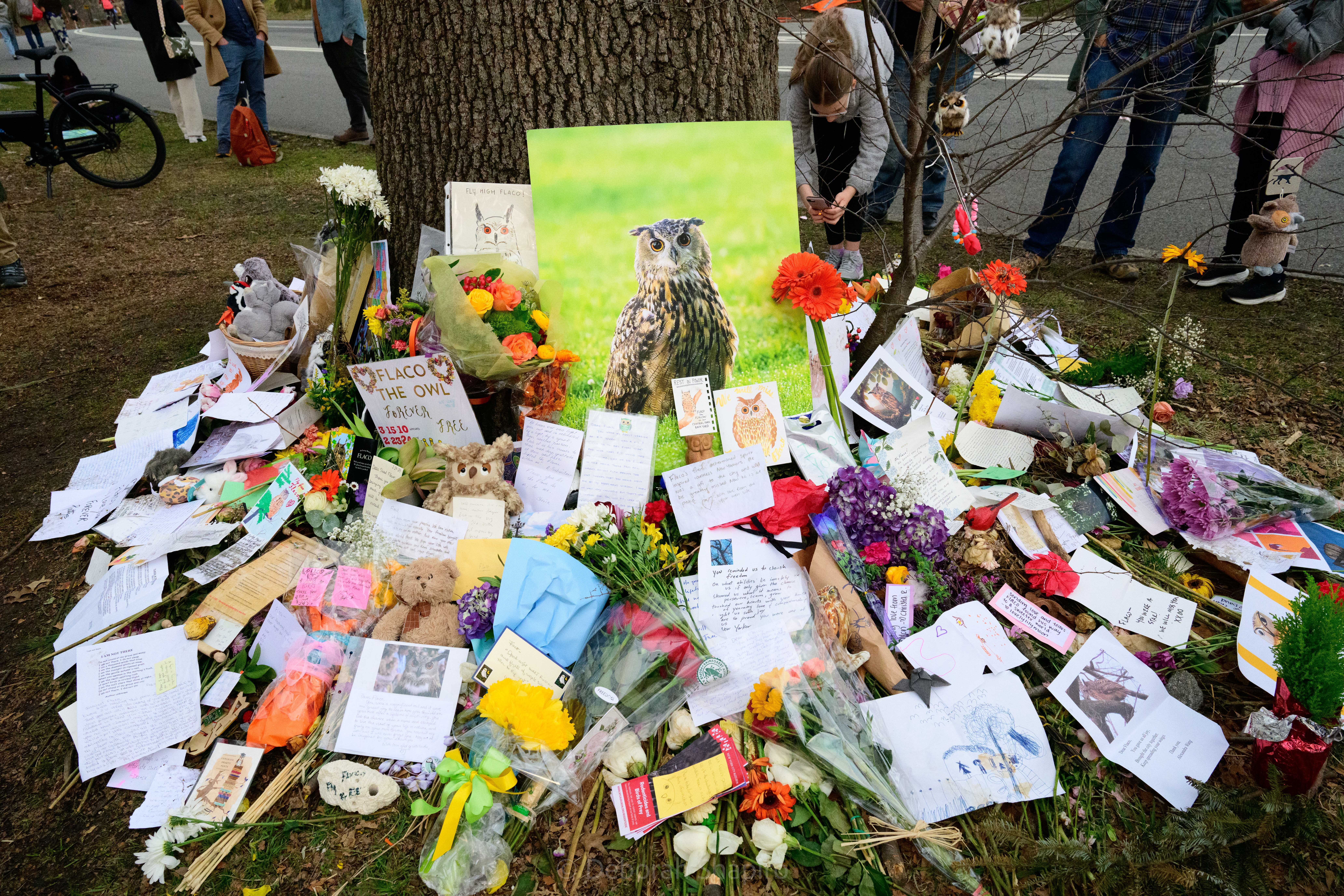 David Lei’s photograph of Flaco on the grass was the centerpiece of the tribute
