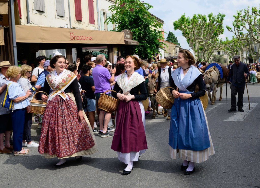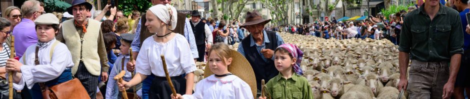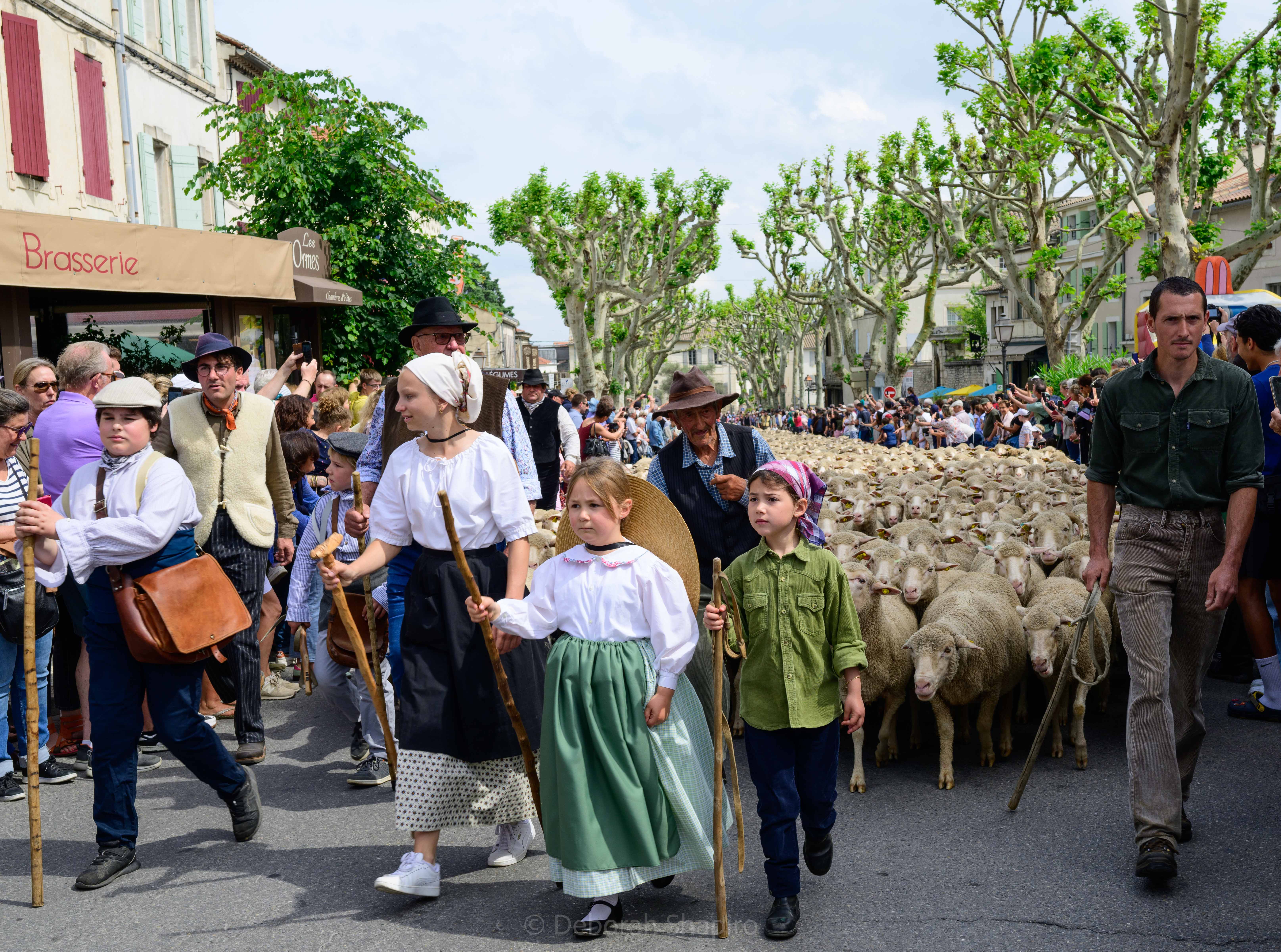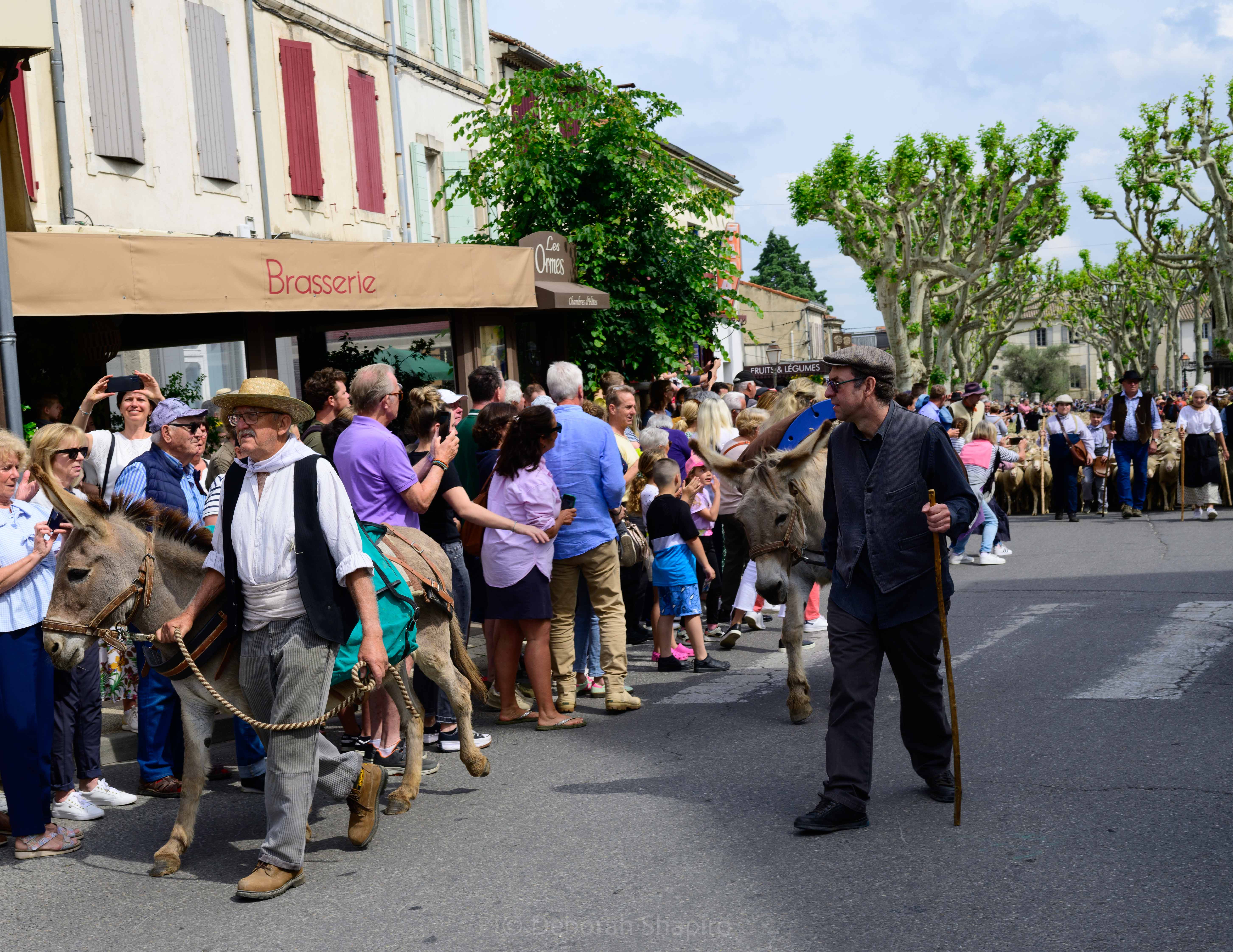 This year the blog went to St. Remy en Provence, France on a very special occasion: every year on Pentecost Monday, the Fete de la Transhumance is celebrated on the streets of the town. On this day, by tradition, the sheep are herded from their winter pastures in the lowlands up to the mountains for the summer to the delight of the townspeople. The Transhumance is also celebrated in Switzerland when cows are taken up to the Alps for the summer. These festivals are considered part of the Patrimoine Culturel Immateriel en France, or Intangible Cultural Heritage. It’s also a market day in the town and the crowds of mostly local people spend the rest of their holiday in the restaurants, brasseries, and plazas enjoying the fine spring weather and good meals.