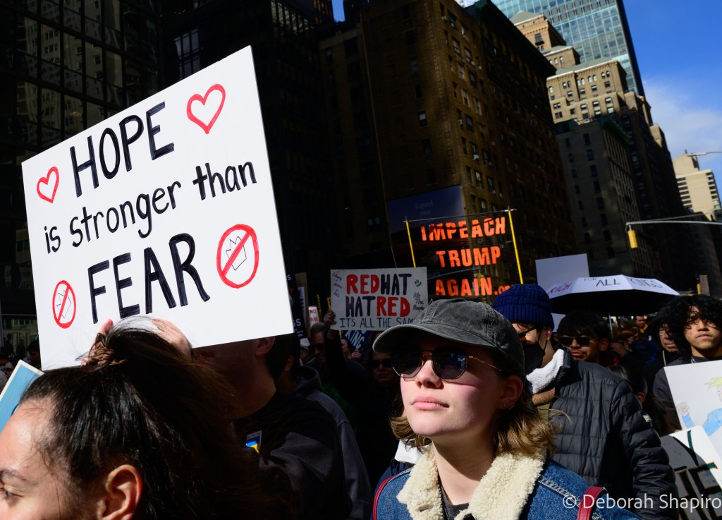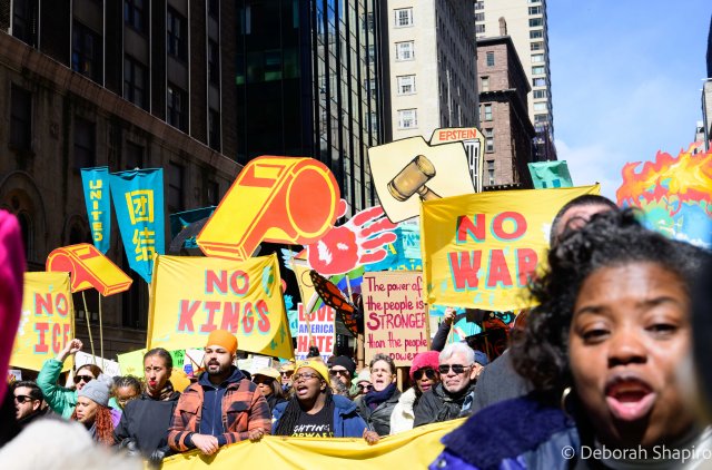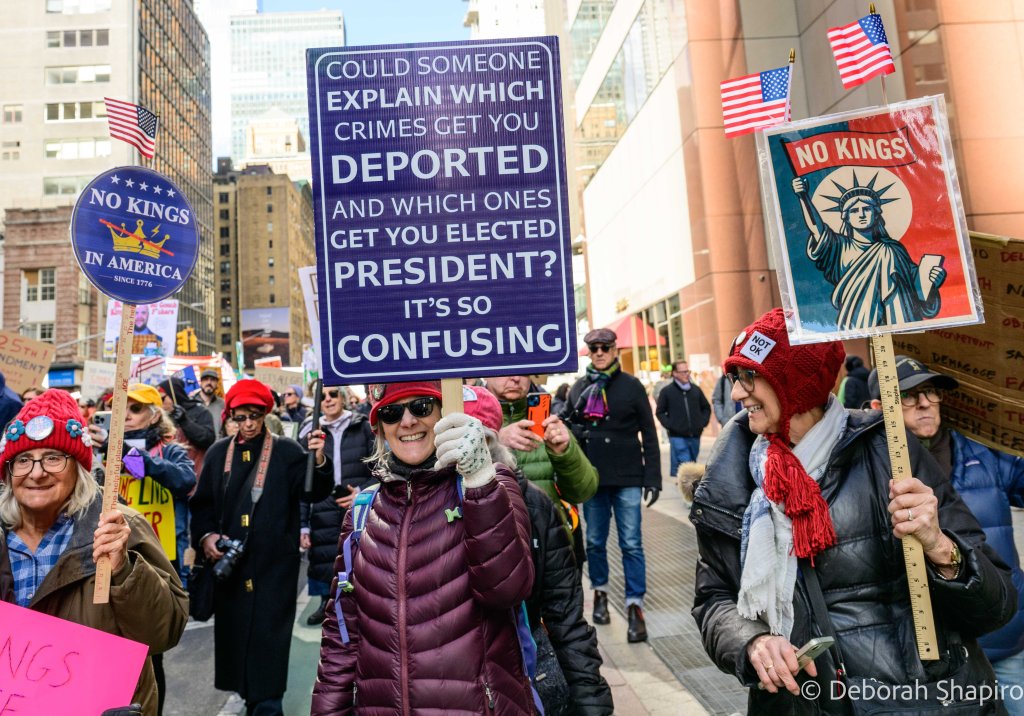 The New York Times called it “a show of defiance across the nation,” with estimates of 8 million protesters across the country in large cities, small towns, and red and blue states. The Manhattan march was considerably larger than the previous ones in 2025 and was massive, energetic, and peaceful.