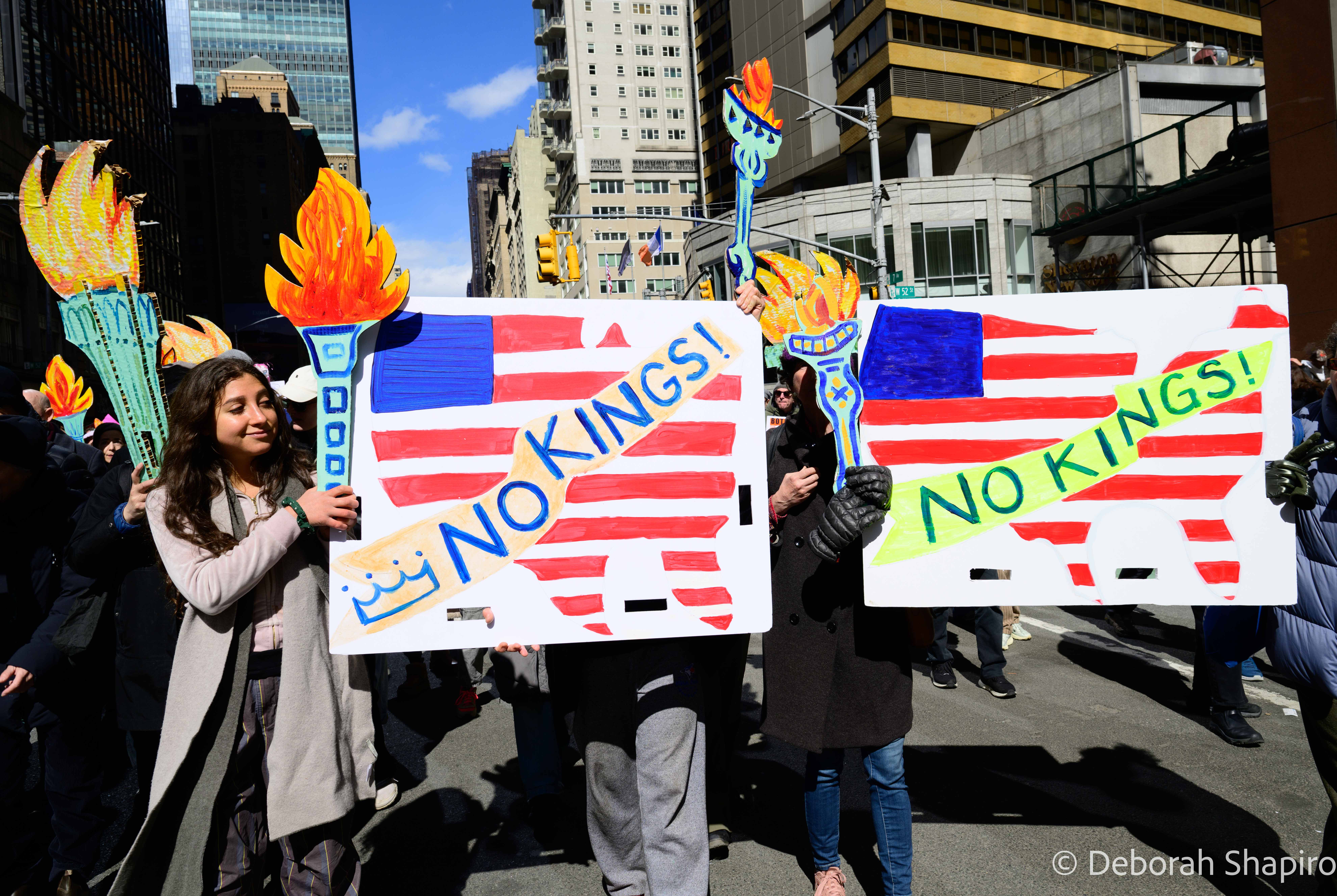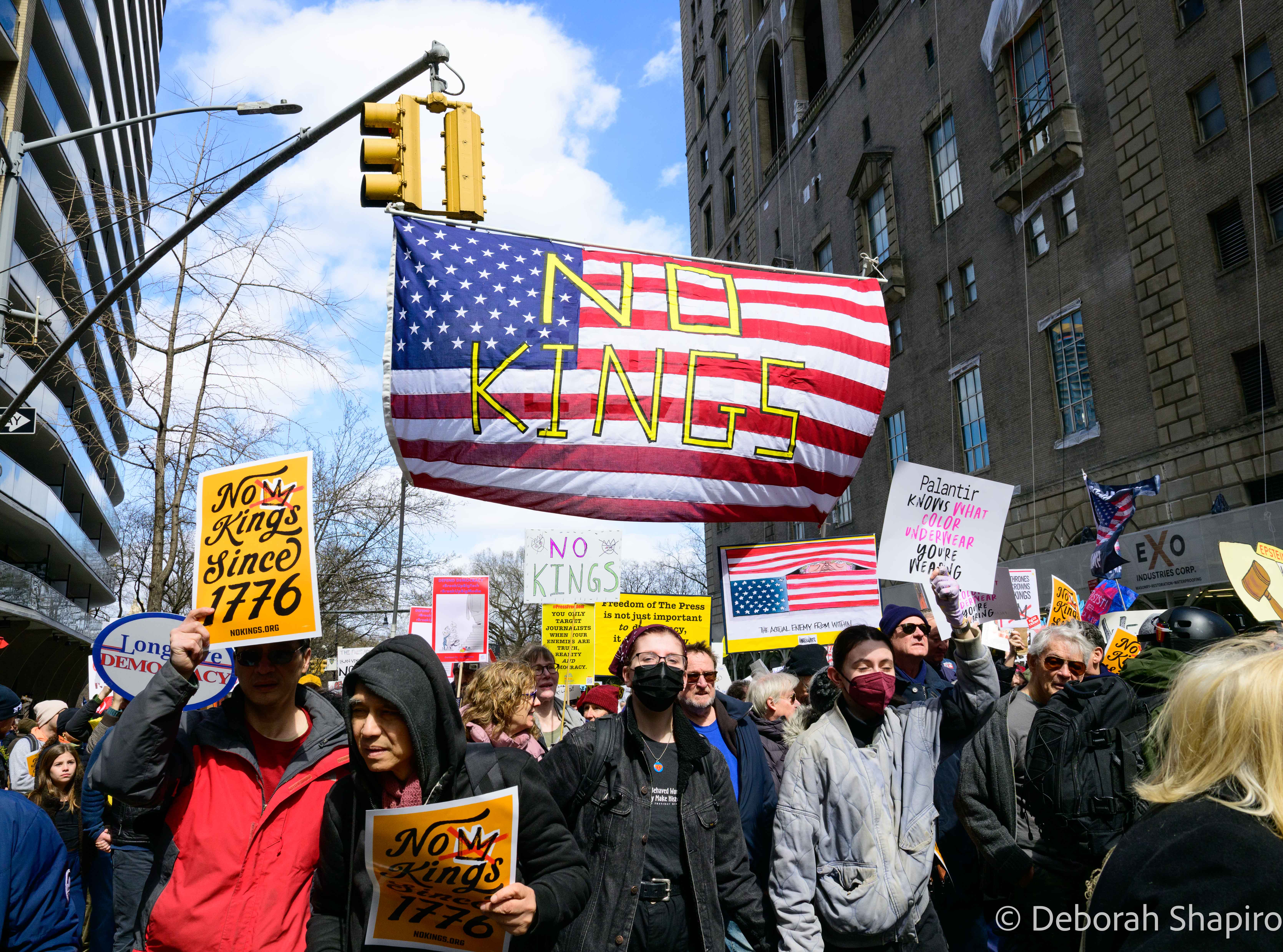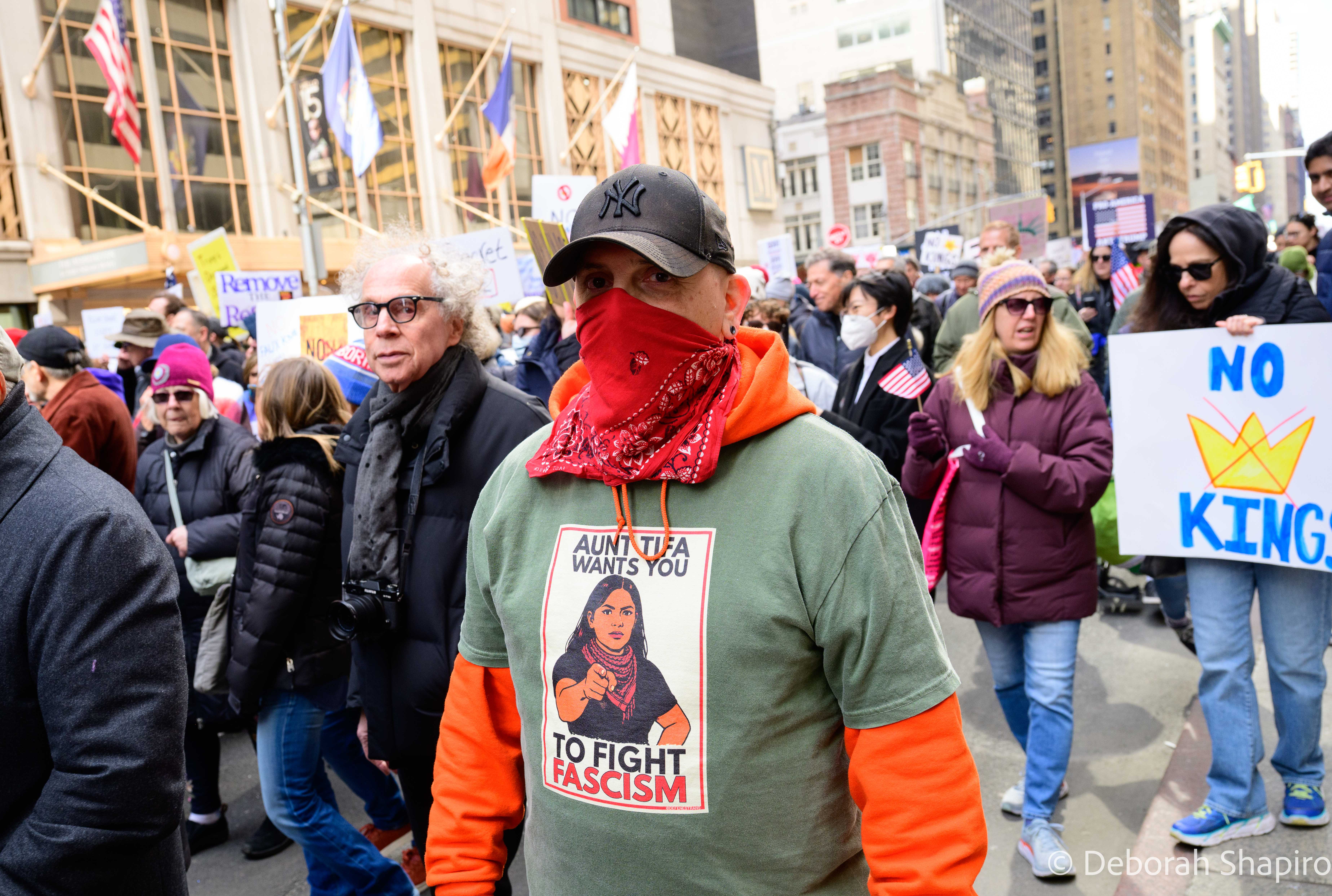 The New York Times called it “a show of defiance across the nation,” with estimates of 8 million protesters across the country in large cities, small towns, and red and blue states. The Manhattan march was considerably larger than the previous ones in 2025 and was massive, energetic, and peaceful.