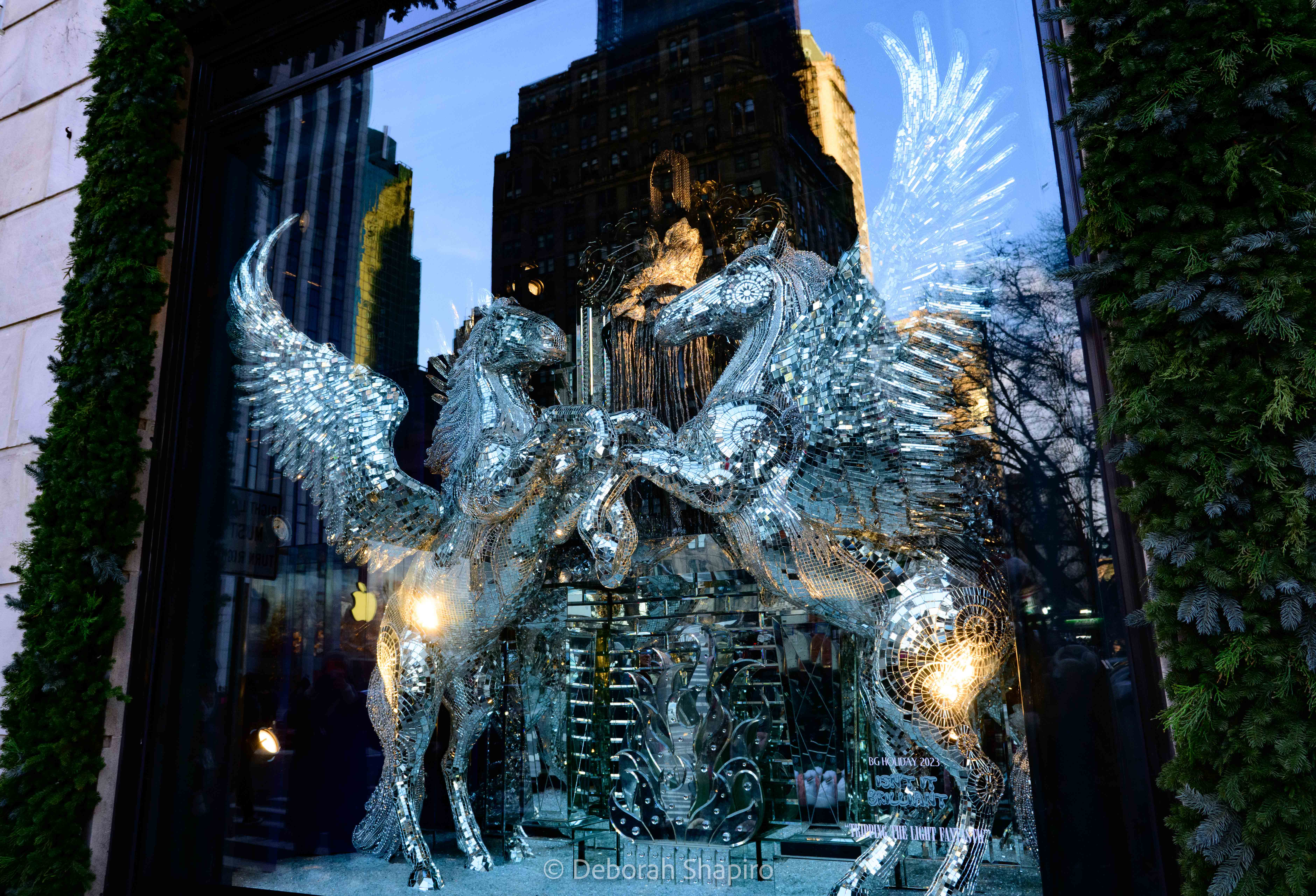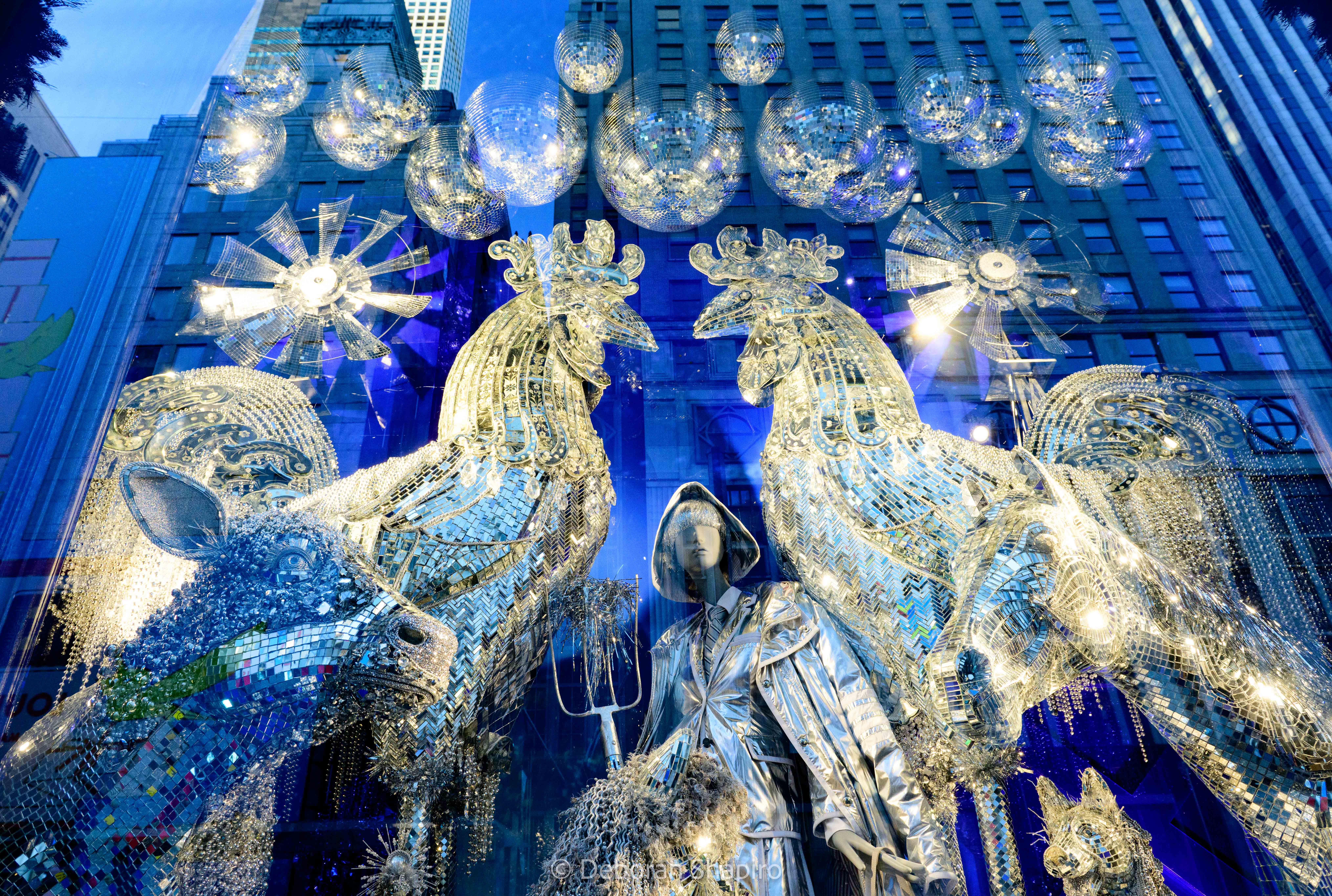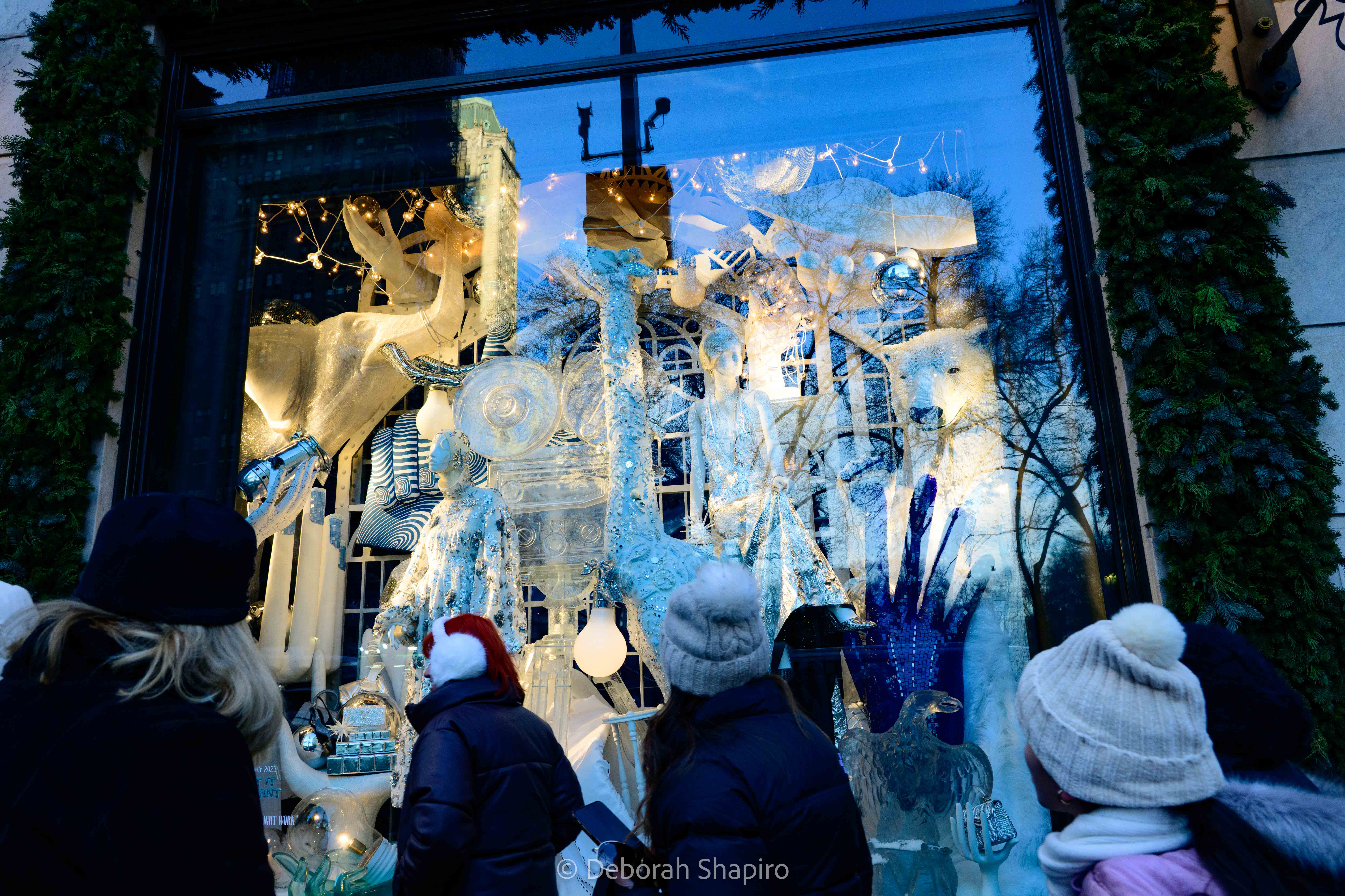 Bergdorf Goodman’s windows, always inventive and elaborate, with reflections of the buildings across Fifth Avenue. The theme this year was animals.