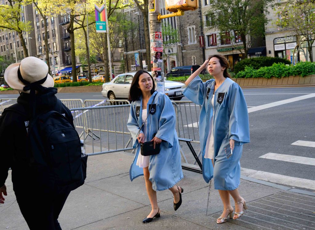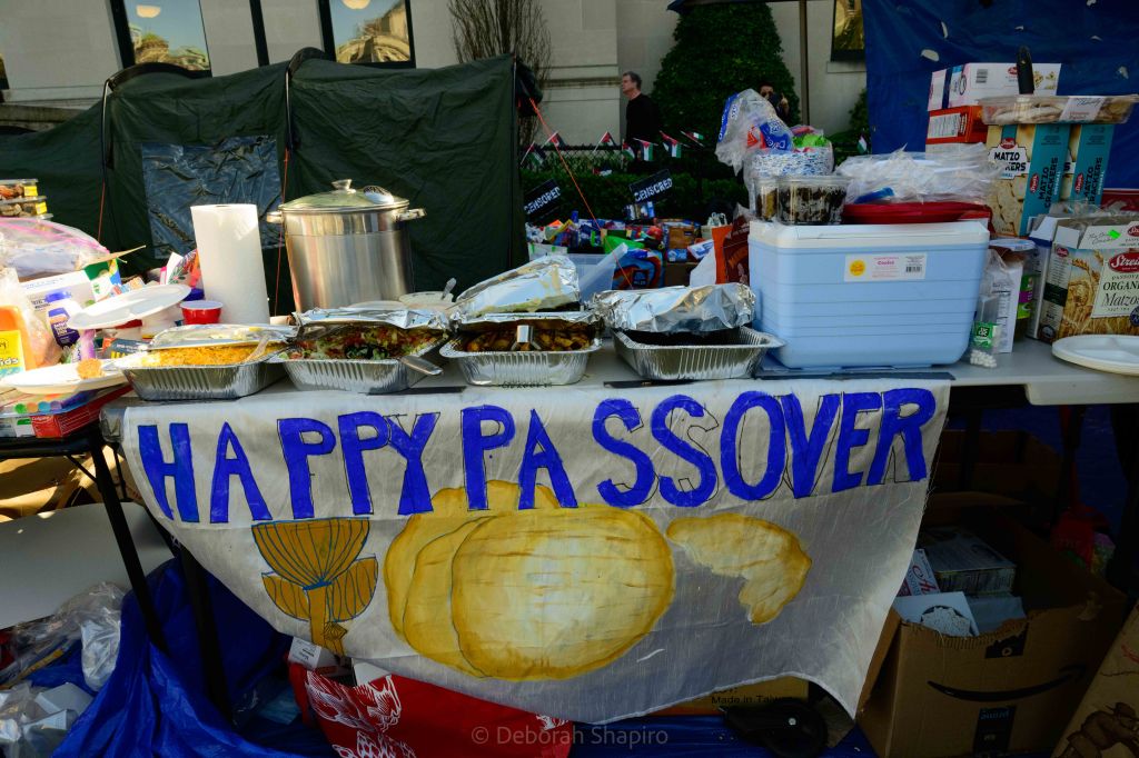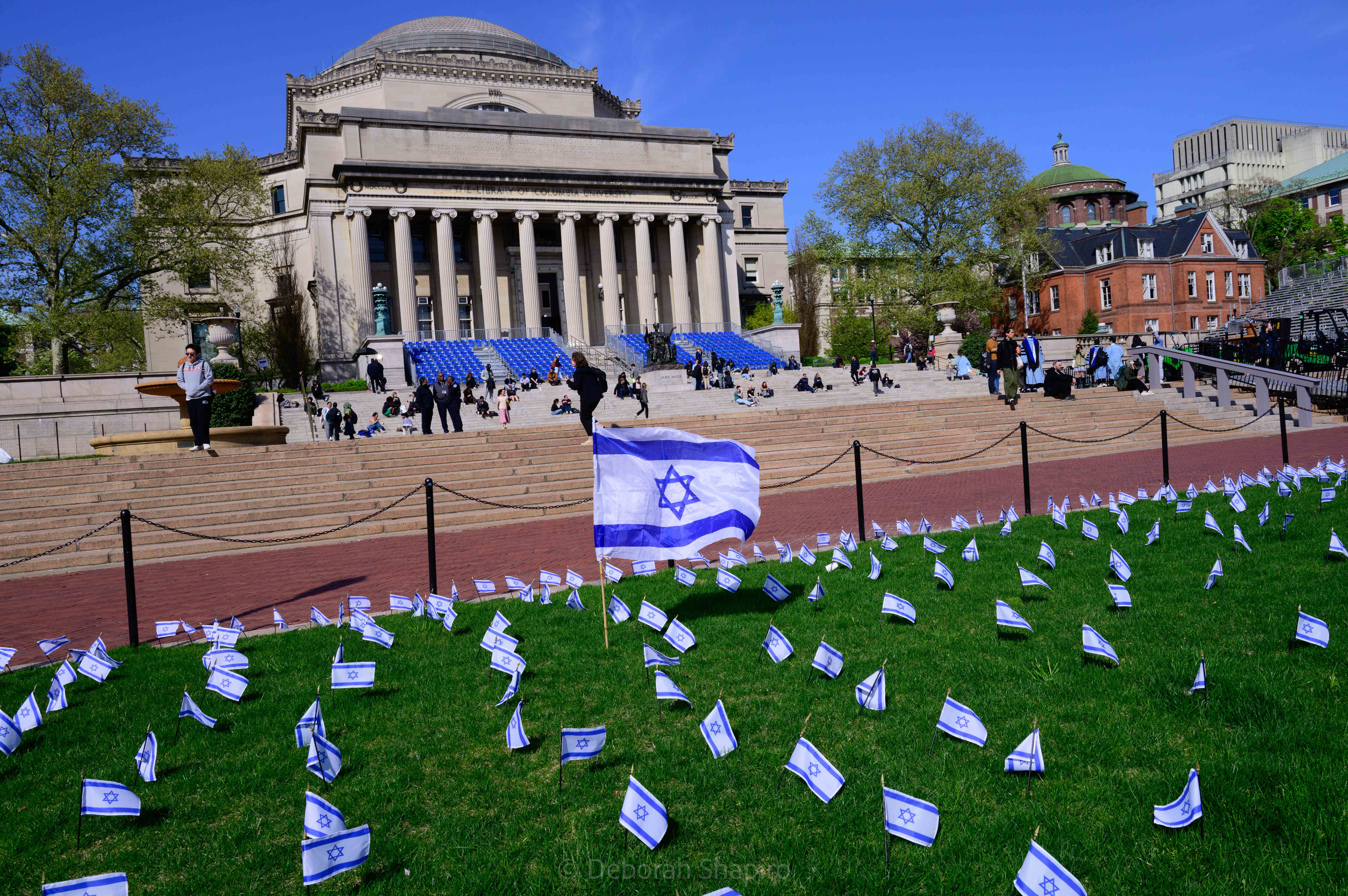 April 26: A pro-Israel demonstration demanding release of the Israeli hostages held in Gaza was held on the Columbia campus in front of Low Library (rear) where preparations are underway for the college graduation. April 26: Volunteer faculty monitors in the encampment formed a de-escalation team to prevent incidents of harassment from anyone inside or outside the protest. Multiple faculty members had gathered on the steps of Low Library, many in their academic gowns, to protest the actions of the president in inviting the police on to campus.At the “People’s Library for Liberated Learning,” protesters can borrow books or attend “learnings.”The busy schedule inside the encampment includes assemblies, Muslim prayer, and Jewish Shabbat services. During the last assembly the student negotiating team reports to the group about its daily talks with the Columbia administration. Muslim prayer, facing Low LibraryDonations of food and supplies flooded the encampment in the days after the arrests. This table features kosher food for Passover while the one next to it has halal food. A Passover Seder was held on the encampment with Jews and Muslims participating.The public is barred from the campus with strict security measures.A campus gateMany students came to campus in their graduation robes to take pictures in front of campus landmarks. Their graduation ceremony is scheduled for June 15 on the steps of the library opposite the encampment, which is occupying space needed for seating. No one knows whether the protesters will leave in time for graduation. These students graduated from high school four years ago during Covid and could not attend their own graduations then.